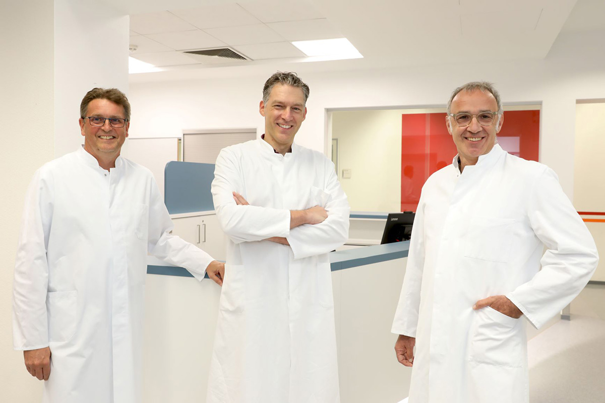 Die drei Knie-Hauptoperateure am St. Elisabeth-Hospital Meerbusch-Lank: Privat-Dozent Dr. Tim Claßen (Chefarzt, Mitte), Michael Metz (l.) und Frank Lorenz (beides Oberärzte)