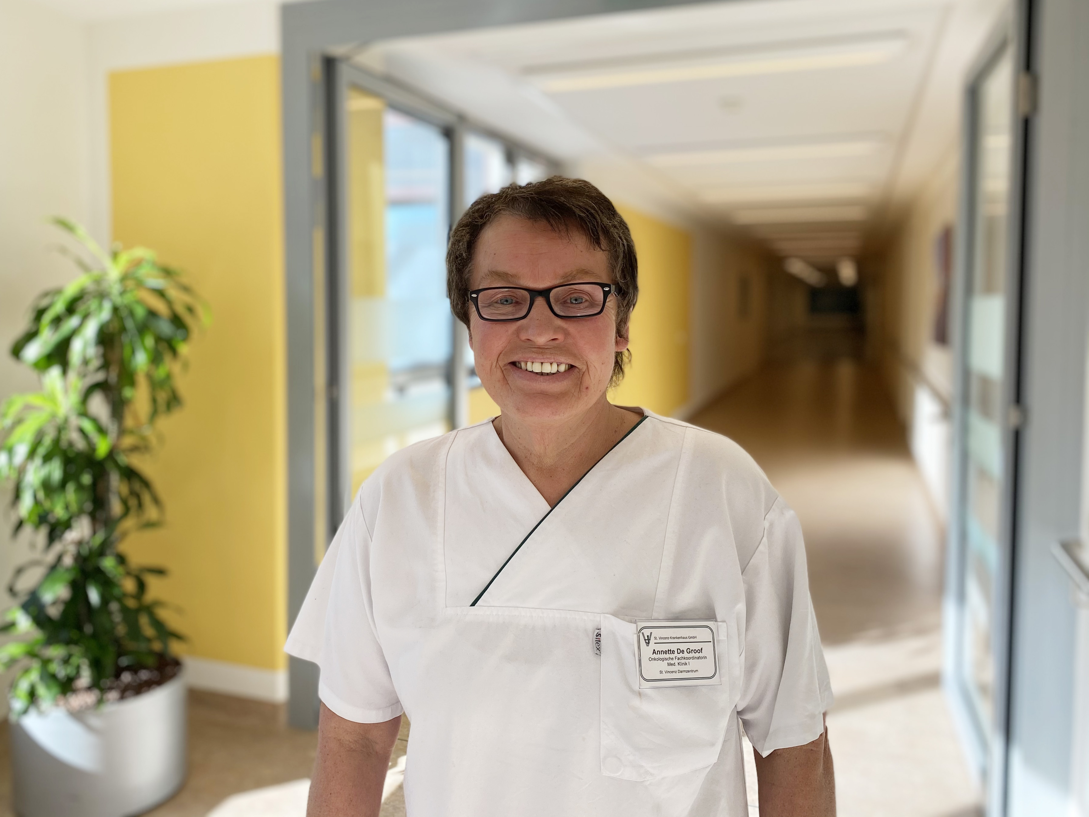 „Den Krebspatienten schwirren nach der Diagnose und während der Behandlung im Krankenhaus unzählige Gedanken im Kopf umher. Darmspiegelungen, Rekto- oder Gastroskopie, Abdomensonografie sind nur einige Begriffe, die bei unseren Darmkrebs-Patienten große Fragezeichen auslösen. Wir nehmen uns Zeit, um alle offenen Fragen intensiv zu klären“, erklärt Annette de Groof, onkologische Fachschwester. Sie ist Initiatorin der neuen „Extra-Visite“: ein zusätzlicher Besuch durch die betreuende Pflegefachkraft, einer speziell ausgebildeten onkologischen Fachkraft, der Teamleitung und dem Stationsarzt. In das neue Konzept hat das Darmzentrum-Team viel Herzblut gesteckt und hat für die Patienten einen erheblichen Mehrwert: Sie werden bereits während des Krankenhausaufenthaltes fit für ihren Alltag gemacht. Denn Patienten fühlen sich oft hilflos, sind verunsichert, ob sie ihren Beruf weiter ausüben können, welche Therapien sie erwarten oder mit welchen Nebenwirkungen zu rechnen ist. „Auf Wunsch beziehen wir auch die Angehörigen mit in unsere neue Visite mit ein. Denn auch für die Familien ist die Erkrankung ein großer Einschnitt und der Alltag ist oft nicht mehr der gleiche“, weiß Annette de Groof aus ihrer langjährigen Erfahrung. Der Patient entscheidet dabei selbst, in welchem Ausmaß er die Unterstützungsangebote annehmen möchte. Auch die beiden Leiter des Vincenz-Darmzentrums Prof. Dr. Jobst Greeve und PD Dr. Hubert Scheuerlein freuen sich über den Startschuss der neuen Visite: „Wir setzen alles daran, dass die verschiedenen Fachdisziplinen, die Pflege, die Physiotherapie und die Psychoonkologie stark zusammenarbeiten. Denn durch diese engmaschige Behandlung erhöhen wir die Heilungschancen der Patienten enorm. Wir haben schon viel positives Feedback zu der neuen Visite erhalten.“