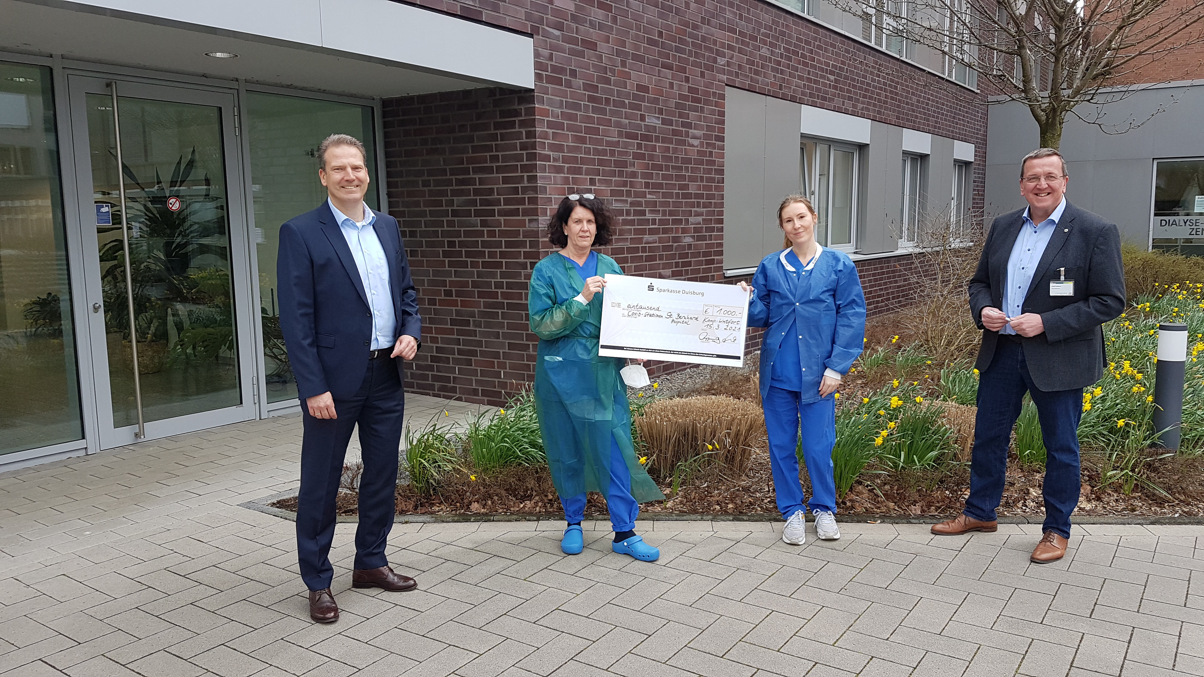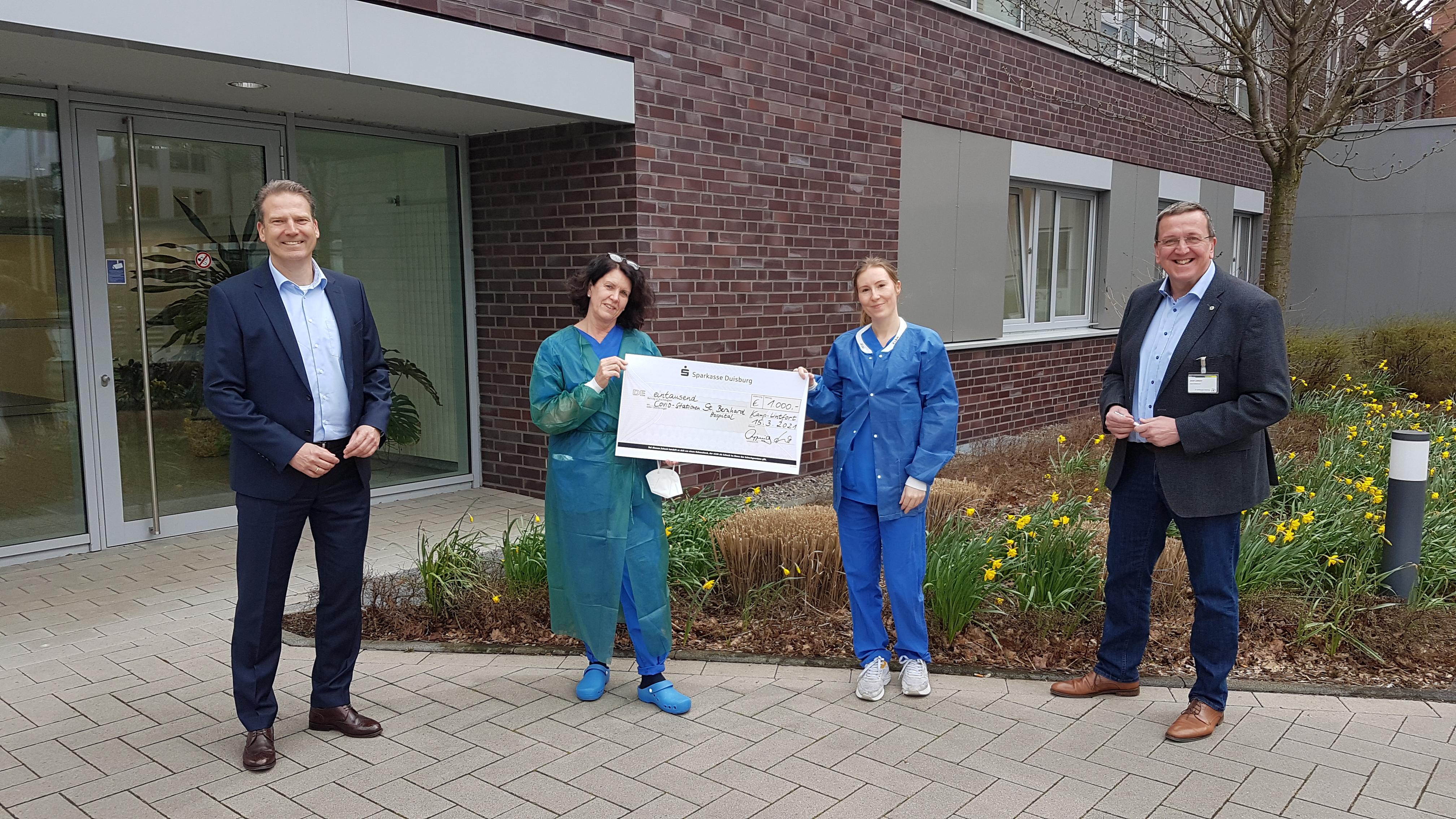 Sparkasse Duisburg spendet 1000 € für Covid-Stationen des St. Bernhard-Hospitals