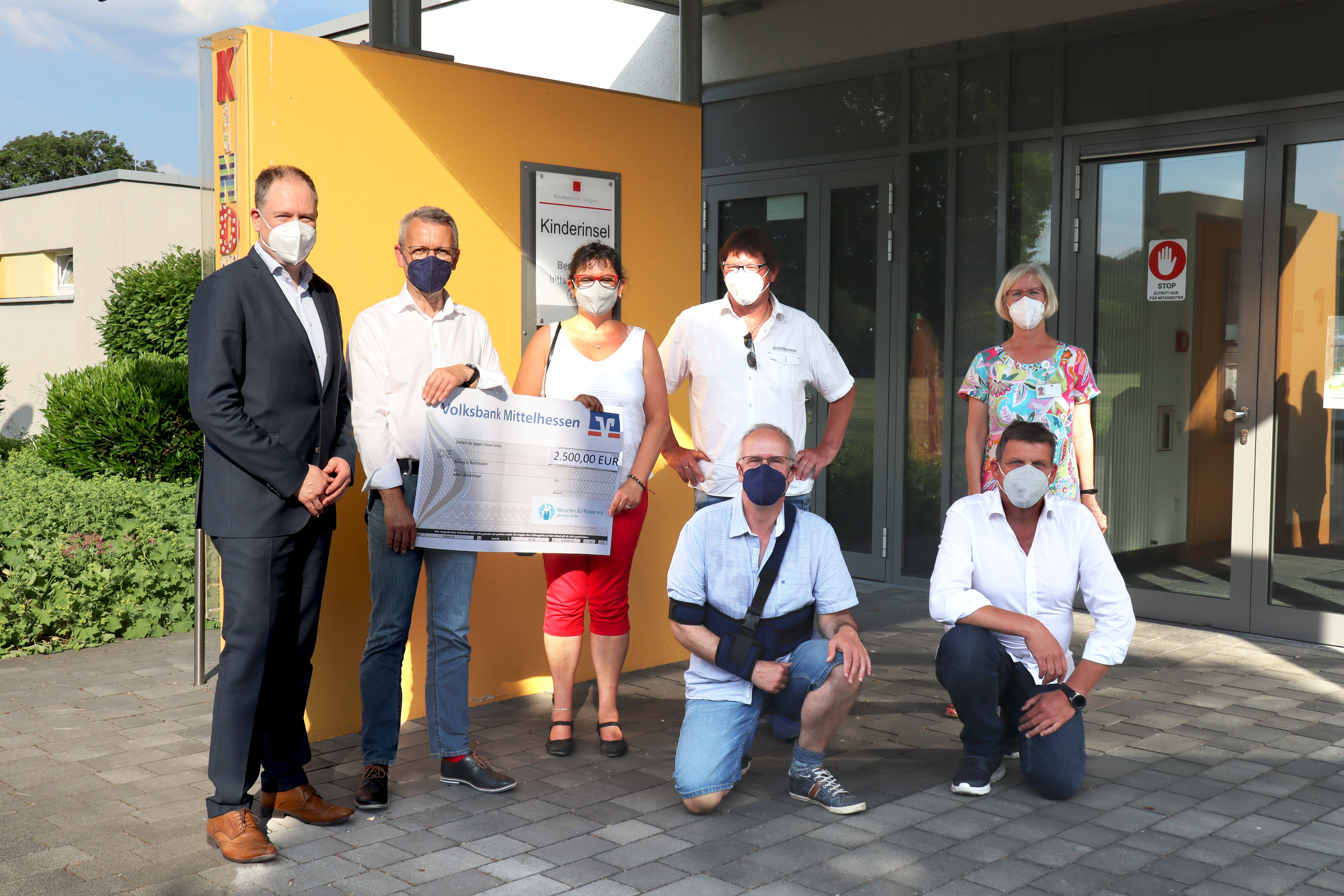 Zusammen mit der Familie Becker aus Dietzhölztal, die die Hälfte der Spende aufgebracht hat, überreichten Vertreter des Vereins letzte Woche 2.500,00 Euro an Birgit Krumm, Einrichtungsleiterin der kinderinsel, einer Intensivstation mit Wohncharakter für dauerhaft beatmete Kinder und Jugendliche auf dem Wellersberg. Mit dem Geld möchte die Einrichtung Lagerungshilfen für den Spiel- und Entspannungsbereich der Bewohner anschaffen. Klinikgeschäftsführer Carsten Jochum zeigte sich sehr erfreut über die erneute Unterstützung der DRK-Kinderklinik Siegen durch den Verein: „Wir sind sehr dankbar, immer wieder eine solch wichtige Unterstützung bei unseren Projekten und Anschaffungen durch „Menschen für Kinder“ und andere Spender zu erfahren. Nur dank solcher Engagements und Spenden können wir unsere hochspezialisierte Versorgung wie etwa mit der kinderinsel hier in Siegen aufrechterhalten.“