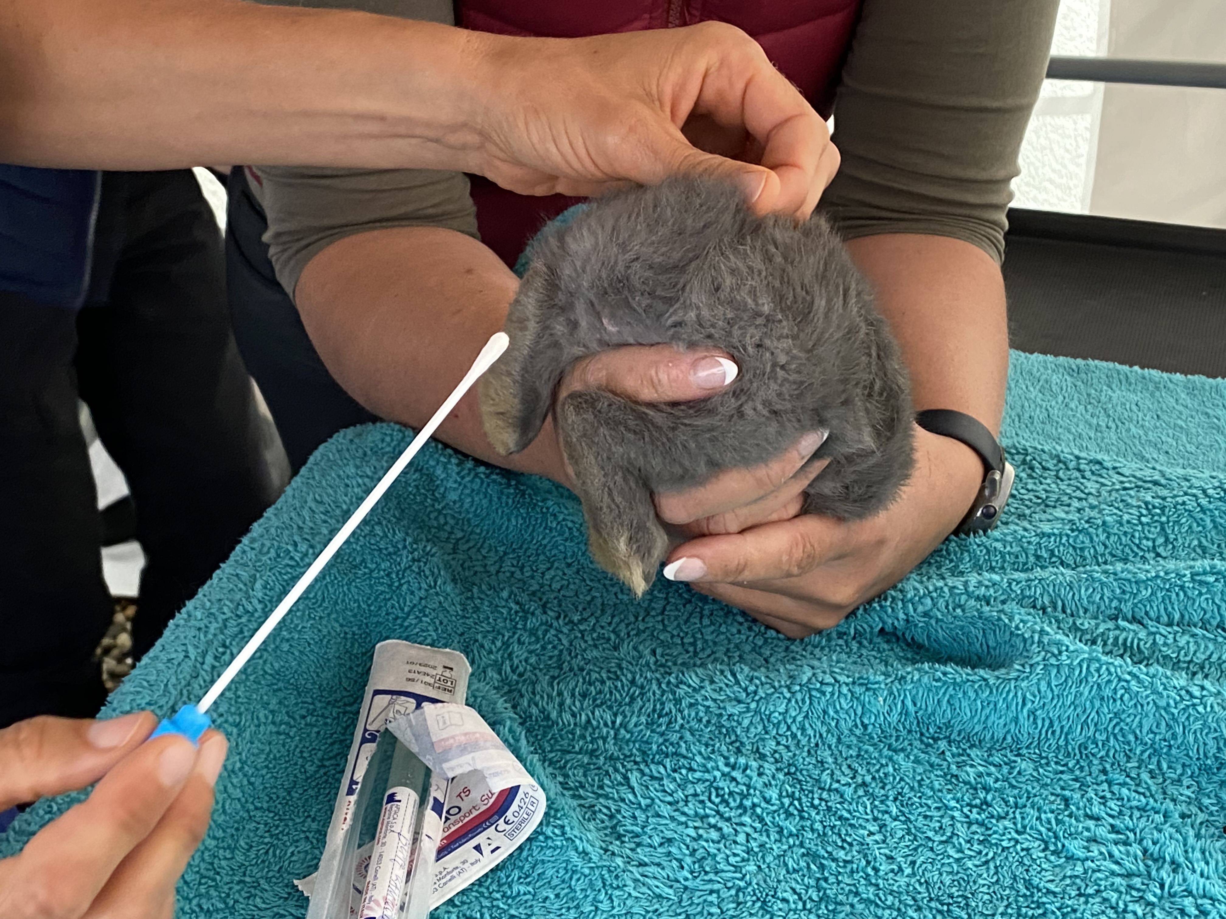 Wie man auf den Bildern sieht, gibt es teils deutliche Unterschiede in der Handhabung im Vergleich zum Corona-Test... Alle neuen, getesteten Tiere waren übrigens negativ, sind nun regelmäßig mit ihren Betreuern zu Gast und machen den kleinen, oft schwer kranken Patienten eine Freude im Krankenhausalltag.