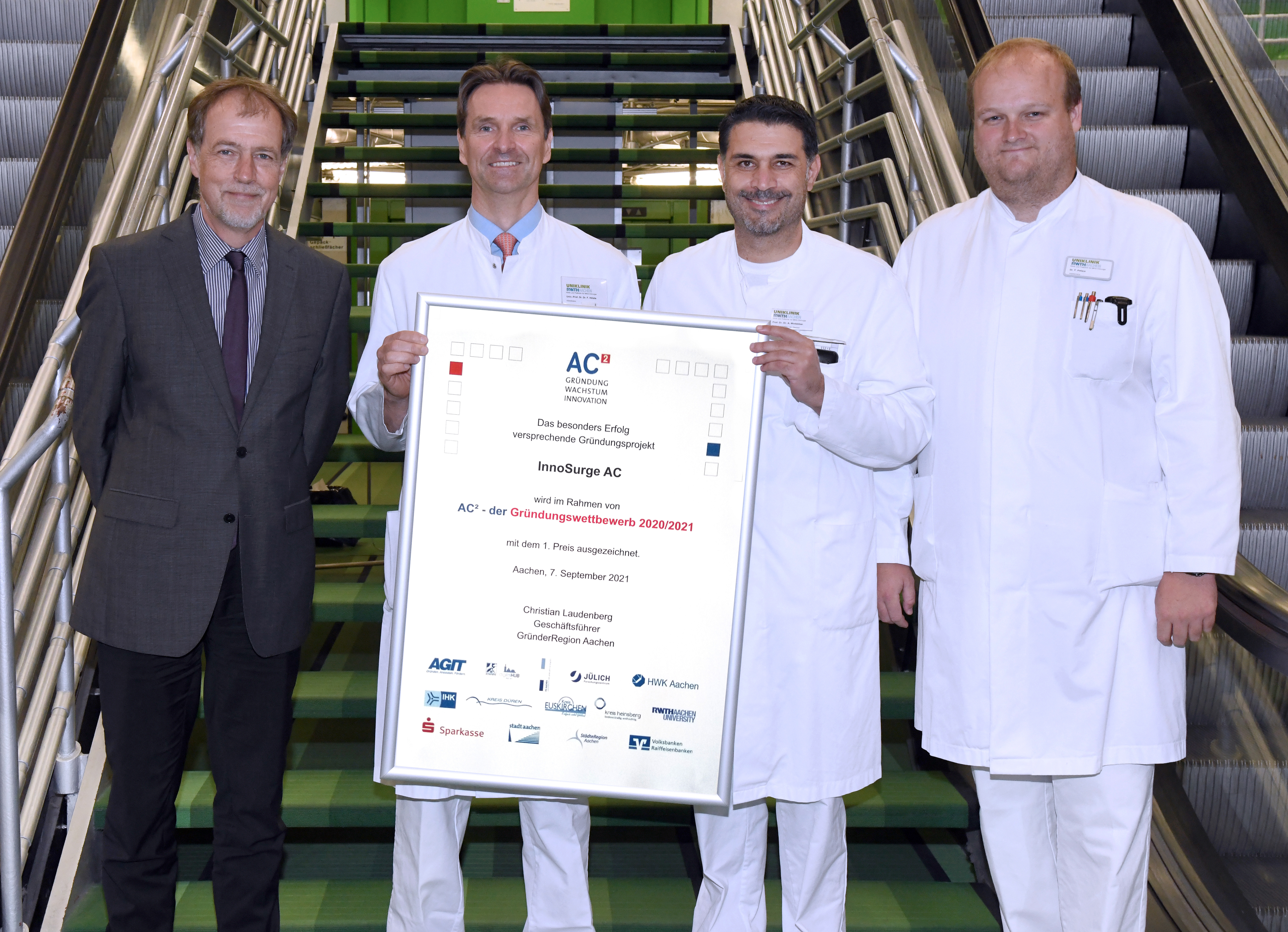 Aachen, Das Medizintechnik-Start-up InnoSurge AC, bestehend aus Ingenieuren, Forschern und Chirurgen aus dem Team von Univ.-Prof. Dr. med. Dr. med. dent. Frank Hölzle, Direktor der Klinik für Mund-, Kiefer und Gesichtschirurgie an der Uniklinik RWTH Aachen, hat den ersten Preis bei dem Gründungswettbewerb AC2 und damit ein Preisgeld in Höhe von 10.000 Euro gewonnen. Mithilfe der entwickelten Softwarelösung können komplexe, chirurgische Eingriffe für Gesichtsrekonstruktionen vorab automatisiert, virtuell geplant werden.