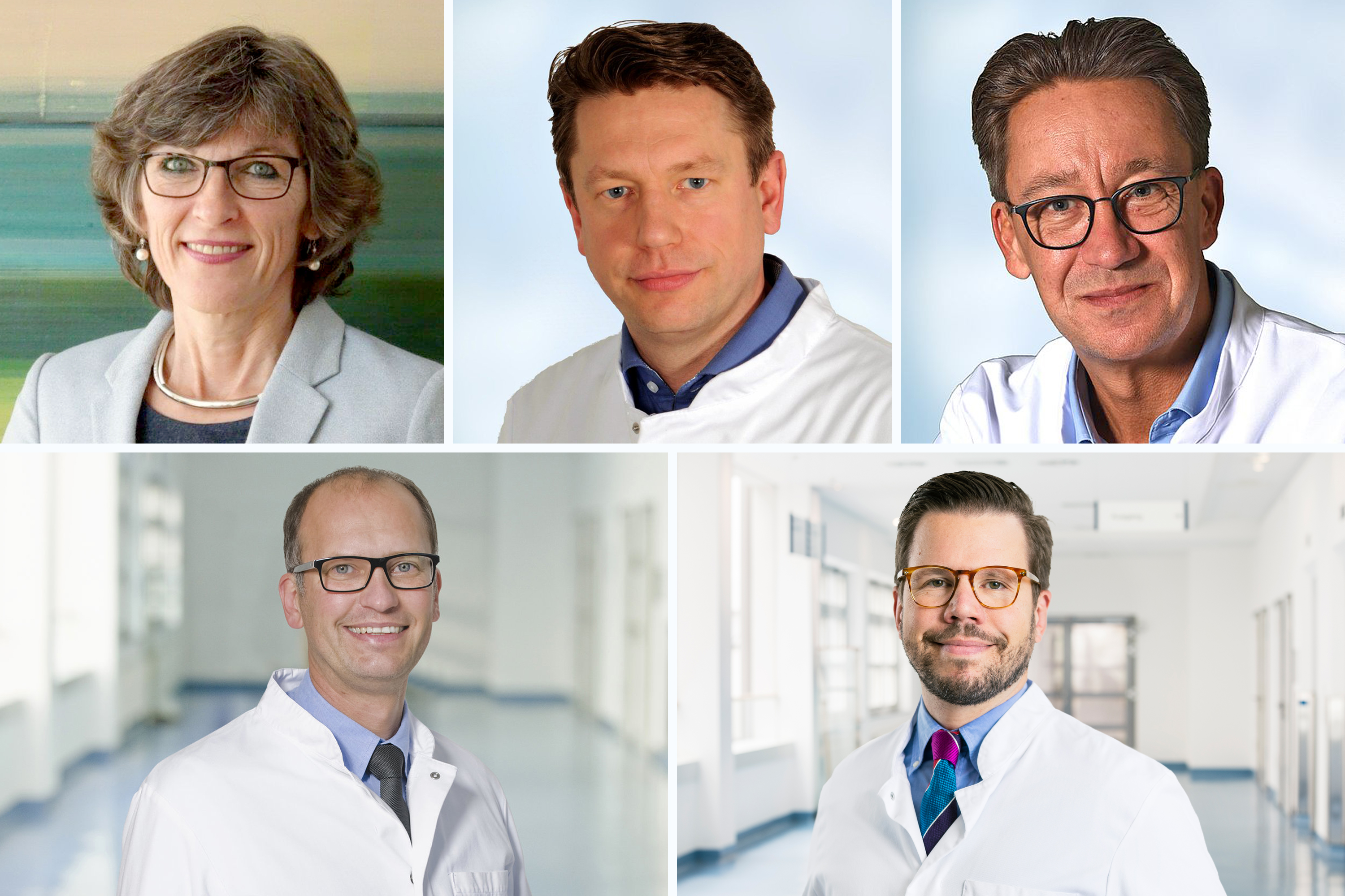 Bild 1: Prof. Dr. med. Thomas H. Ittel, Vorstandvorsitzender und Ärztlicher Direktor der Uniklinik RWTH Aachen, und der klinische Teil des Teams aus der Klinik für Mund-, Kiefer und Gesichtschirurgie freuen sich über die Auszeichnung: Klinikdirektor Univ.-Prof. Dr. med. Dr. med. dent. Frank Hölzle, Prof. Dr. med. Dr. med. dent. Ali Modabber und Dr. med. dent. Florian Peters (v. l. n. r.).