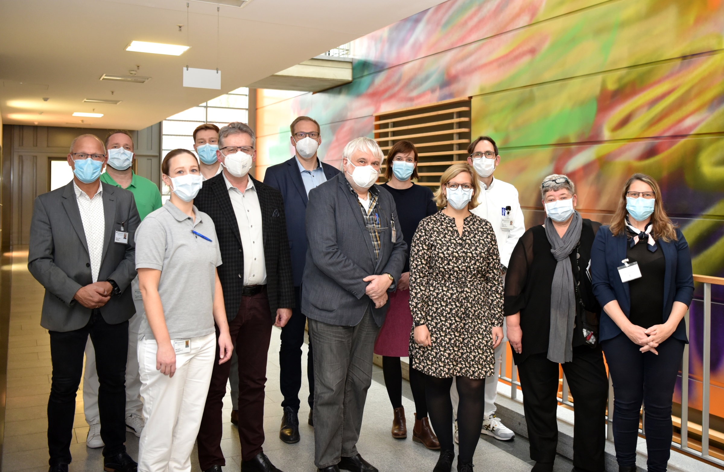 Bild: Das externe Audit-Team mit Kolleginnen und Kollegen der Abteilung für BG Rehabilitation und Chefarzt Dr. Sven Jung (3. v. l.) nach dem erfolgreichen Abschluss des Audits. Bildnachweis: BG Universitätsklinikum Bergmannsheil
