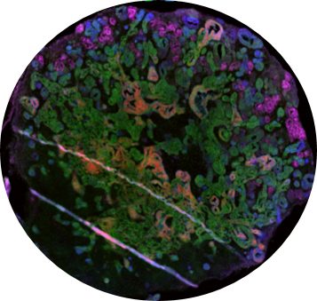 Bild 1: Strukturen eines Nierenorganoids in der Immunfluoreszenzfärbung.