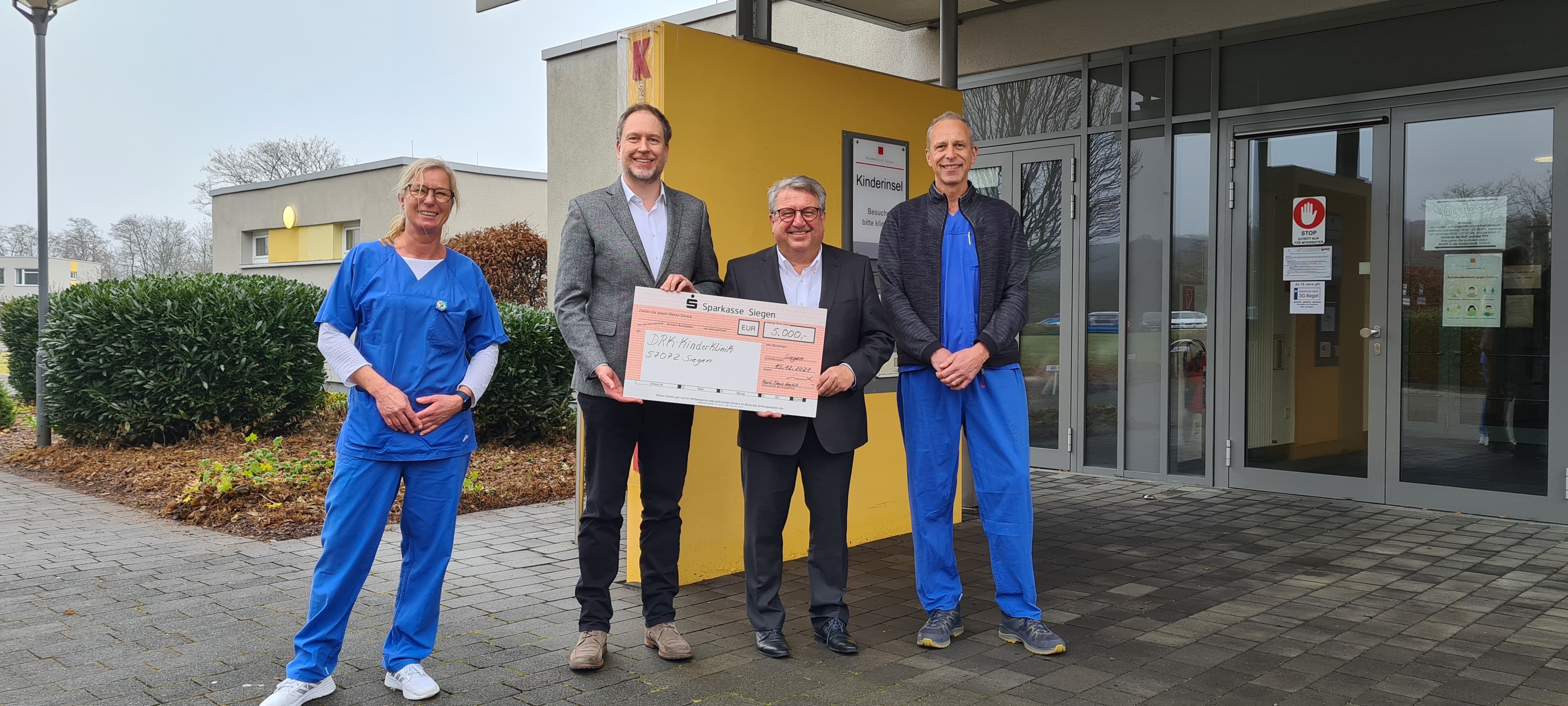 Siegen. Klaus Eibach, Geschäftsführender Gesellschafter der Karl Theis GmbH aus Weidenau war beeindruckt – beeindruckt von dem Film über die Arbeit in der kinderinsel, der Intensivstation mit Wohncharakter für dauerhaft beatmete Kinder und Jugendliche. Noch beeindruckter war er allerdings bei dem Besuch Ende Dezember, nachdem er zusammen mit Chefarzt Dr. Rainer Blickheuser einen Rundgang durch die ganz besondere Einrichtung an der DRK-Kinderklinik Siegen auf dem Wellersberg machte. Und genau dann wusste der erfolgreiche Unternehmer, dass die Spende von 5.000,00 Euro für den anstehenden Umbau gut überlegt war. Die Siegener Kinderklinik möchte nämlich die beiden noch baulich getrennten Bereiche zusammenlegen, um die Versorgungsqualität, aber auch die Arbeitsbedingungen für die Beschäftigten in dem Bereich weiter zu verbessern. „Dafür sind rund 4,5 Millionen Euro veranschlagt, die wir u.a. mit Spenden aufbringen müssen. Für solche Spenden von Unternehmern wie Herrn Eibach sind wir daher sehr dankbar. Ohne Spenden ist so ein Projekt nicht realisierbar“, erläuterte Klinikgeschäftsführer Carsten Jochum. Die Kinderklinik hatte mit einer groß angelegten Spendenkampagne Unternehmen aus der Region angeschrieben und um Unterstützung gebeten.