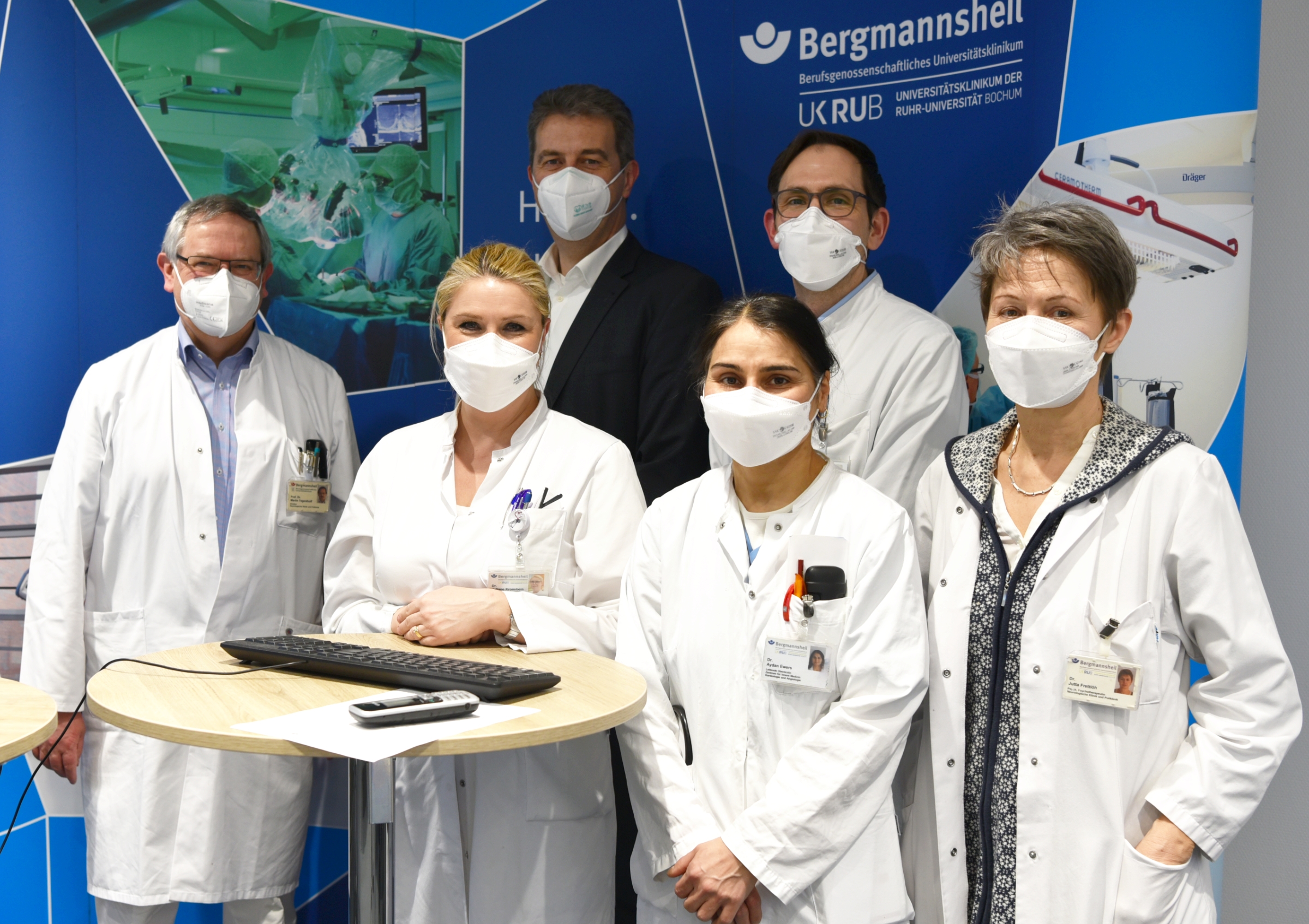 Bild 1 (v.l.): Prof. Dr. Martin Tegenthoff, Dr. Juliane Kronsbein, Markus Taddicken, Dr. Aydan Ewers, Dr. Sven Jung und Dr. Jule Frettlöh erläuterten in Kurzreferaten ihre Erfahrungen. Bildnachweis: Bergmannsheil