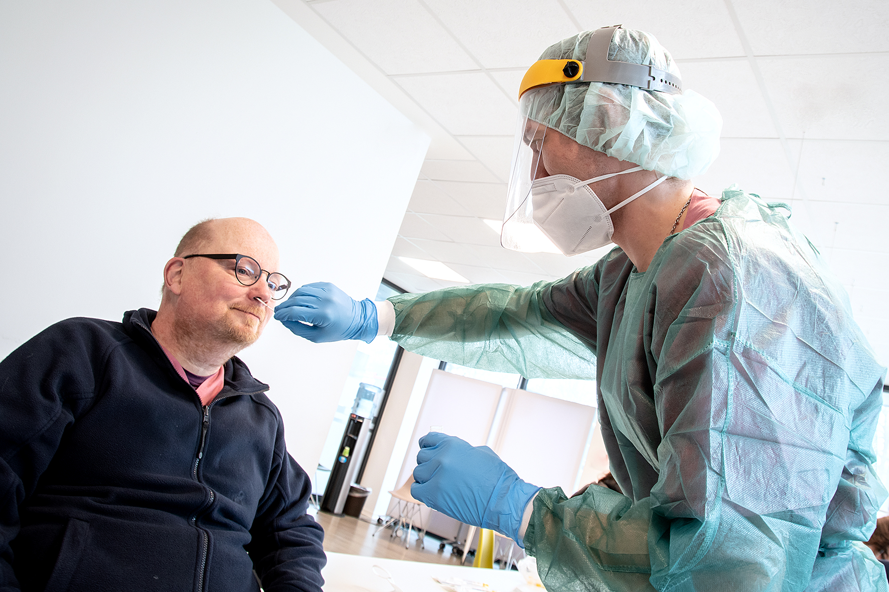 Um die persönliche Sicherheit von Patientinnen und Patienten sowie Mitarbeitenden gleichermaßen zu gewährleisten und mögliche Infektionen frühzeitig zu erkennen, werden am Knappschaftskrankenhaus alle Mitarbeitenden des Universitätsklinikum Knappschaftskrankenhaus Bochum - auch patientenferne Berufsgruppen - bereits seit letztem Jahr regelmäßig mindestens zwei Mal die Woche mittels hochsensibler PCR über das hauseigene Zentrallabor getestet.