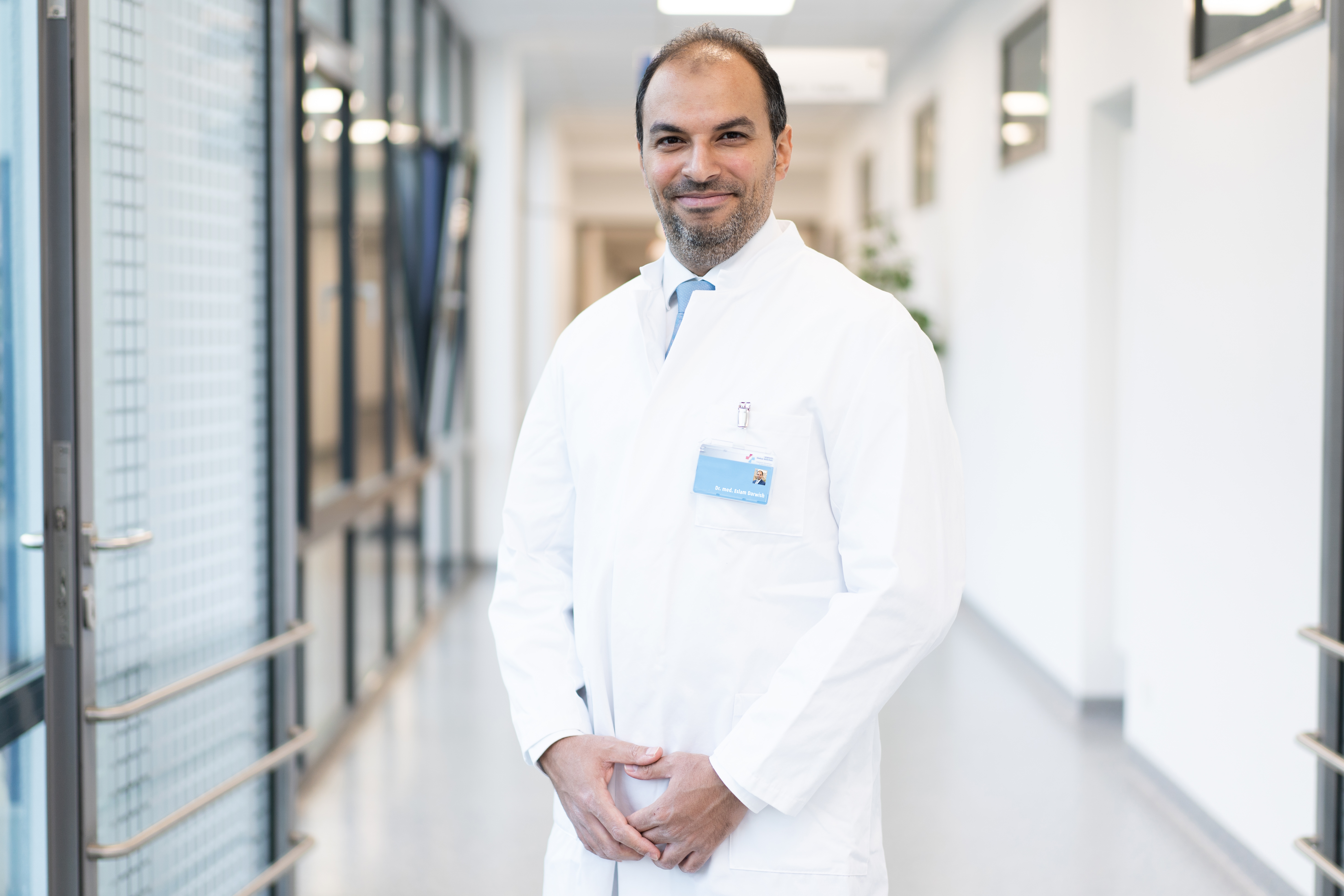 Dies waren die ersten Worte nach der Operation von Herr Z., der seit seiner Kindheit an einer Kyphose leidet, einer verstärkten Vorwärtsbeugung der Brustwirbelsäule, so dass ein aufrechter Blick nicht mehr möglich ist. „Nach der Operation war er einfach nur glücklich, weil er jetzt normal auf dem Rücken schlafen kann und viel wichtiger: weil er nun endlich seiner Frau in die Augen schauen kann", berichtet Chefarzt Dr. Darwish.