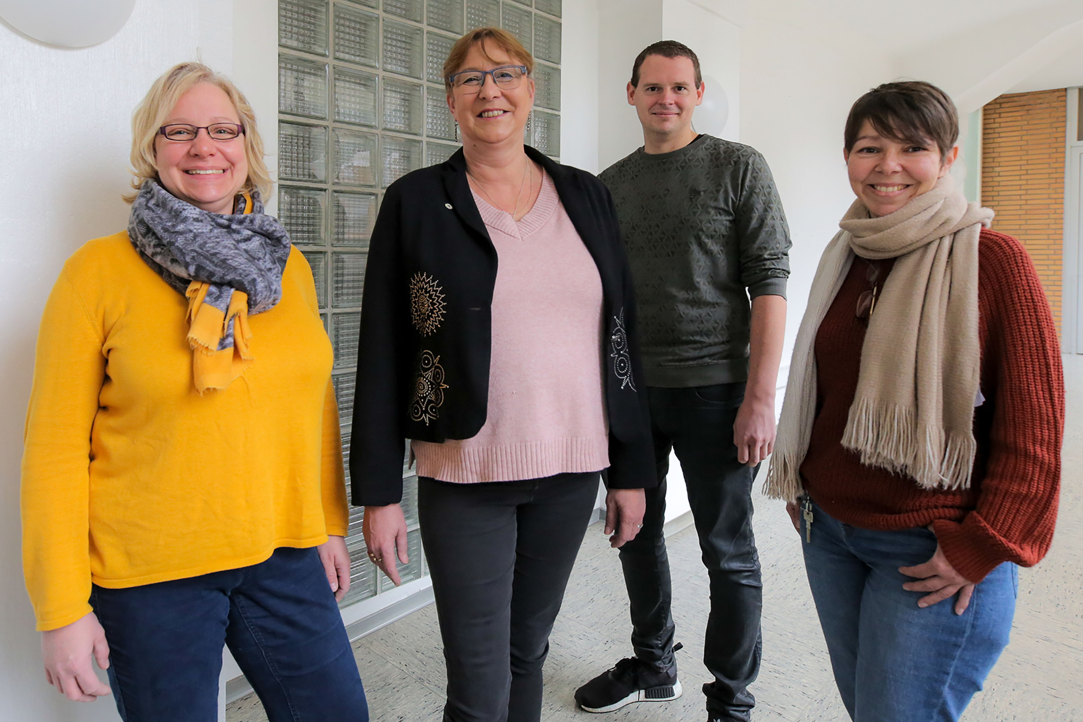 Regina Meuser, Thomas Maaßen und Nicole Stolarow (v.l.) sind die drei Spezialisten des Sozialdienstes im St. Irmgardis-Krankenhaus Süchteln. Sie berichten an Pflegedirektorin Britta Gruhn (2.v.l.). (Foto: Andreas Baum)