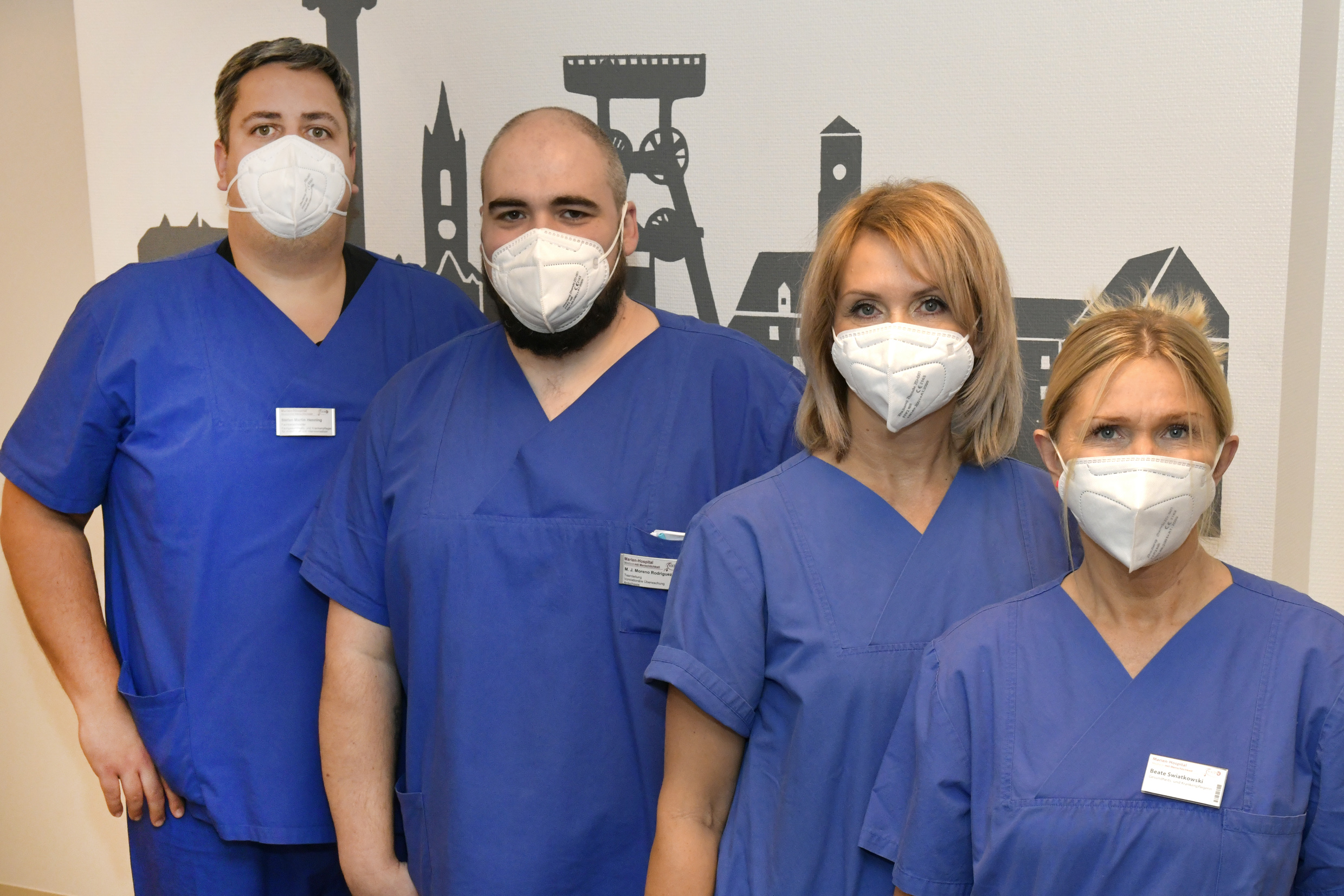 Foto 1: Das Team rund um Leiter der Holding Area Stefan Martin Henning (links) am Marler Marien-Hospital kümmert sich um reibungslose Abläufe für Patienten vor und nach der OP. (Fotocredit: Günter Schmidt)