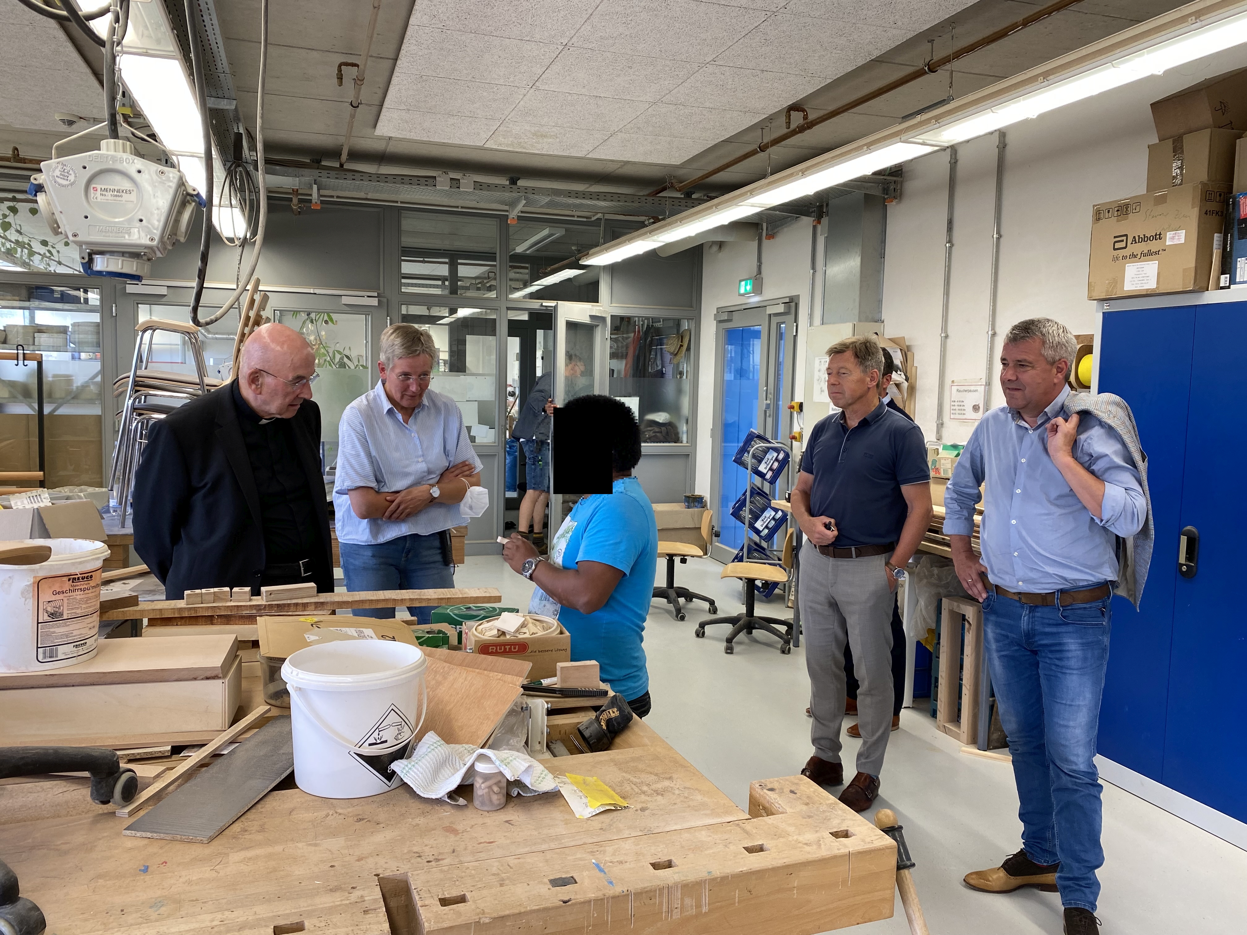 Beim Rundgang über das mehr als sechs Hektar große Klinikgelände kam Bischof Felix immer wieder ins Gespräch mit Patienten, die gerne in der Werkstatt ihre Arbeit, aber auch auf den Stationen ihre Zimmer zeigten. Dass die Arbeit der Therapeuten in der Klinik Früchte trägt, verdeutlichen Statistiken, wie der Ärztliche Direktor Prof. Dr. Dieter Seifert abschließend erklärte: „Die Rückfallquote nach einem Aufenthalt im Maßregelvollzug ist deutlich niedriger, als die von Menschen, die im Justizvollzug waren“. Insbesondere langjährige Nachsorge durch Klinikmitarbeitende und die Entlassung der Patienten in passgenaue betreute Wohnformen seien hier die Schlüssel zu einem stabilen Leben nach der Klinik.