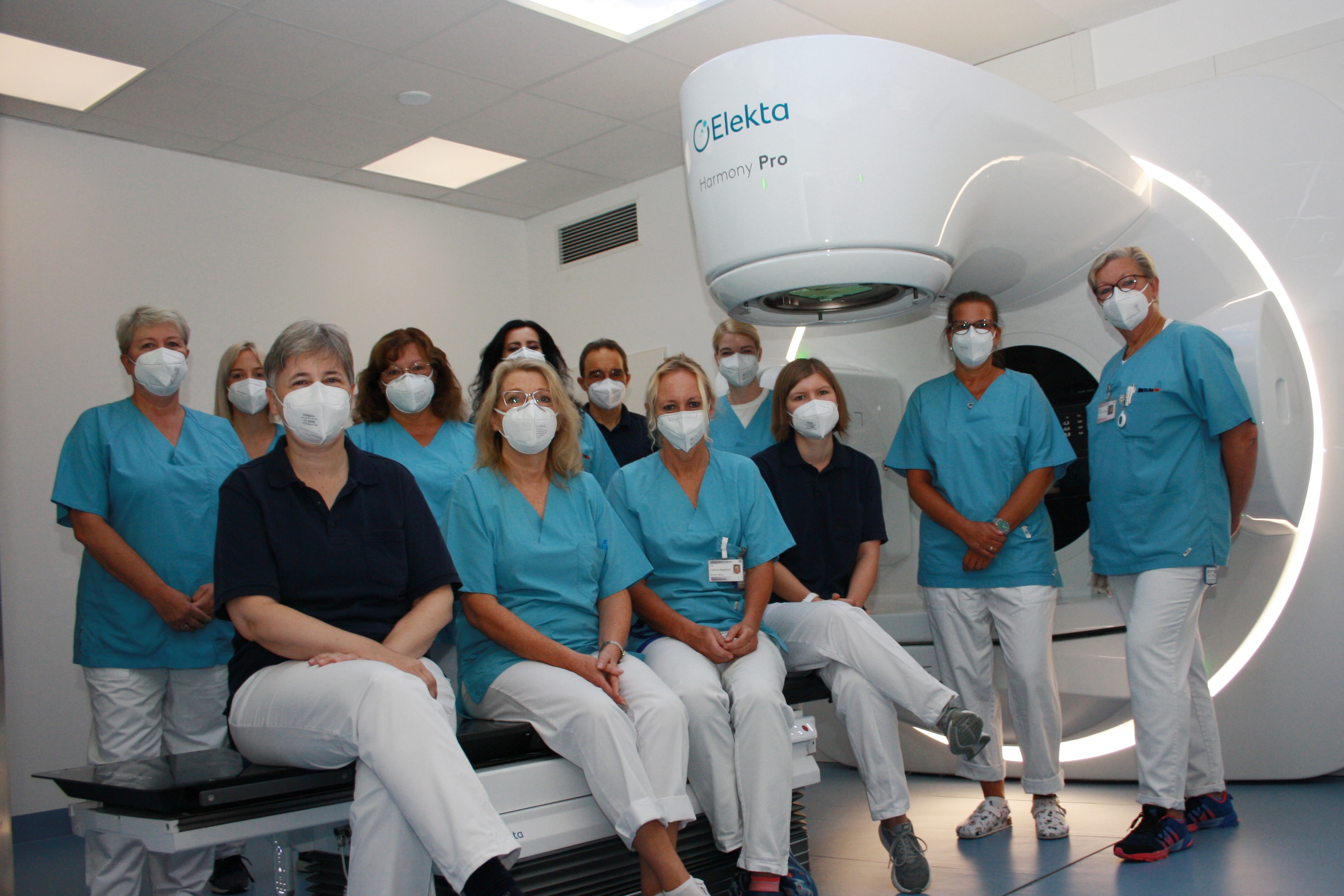 Hemer. In der Strahlentherapie der DGD Lungenklinik Hemer wurde am letzten Freitag im Juli die erste Patientenbestrahlung am neuen Linearbeschleuniger „Harmony“ durchgeführt. Somit ist das Bestrahlungsgerät planmäßig an den Start gegangen. Bei den Mitarbeitenden der Strahlentherapie und der Medizinphysik kam fast Partystimmung über die gelungene Inbetriebnahme auf. Seit Mitte Februar laufen bereits die Maßnahmen zum Austausch des modernen Großgeräts. Der etwa sieben Tonnen schwere neue Linearbeschleuniger wurde im April eingebaut. Nach der mechanischen und elektronischen Installation wurde der Strahl eingerichtet. Danach erfolgte die Abnahme durch einen Sachverständigen. Die anschließende Einrichtung der Basisdaten für die Bestrahlungsoptimierung wurde maßgeblich durch den leitenden Medizinphysiker Stephan Dröge durchgeführt. Nicht zuletzt wurde das Personal auf das neue Gerät eingearbeitet.