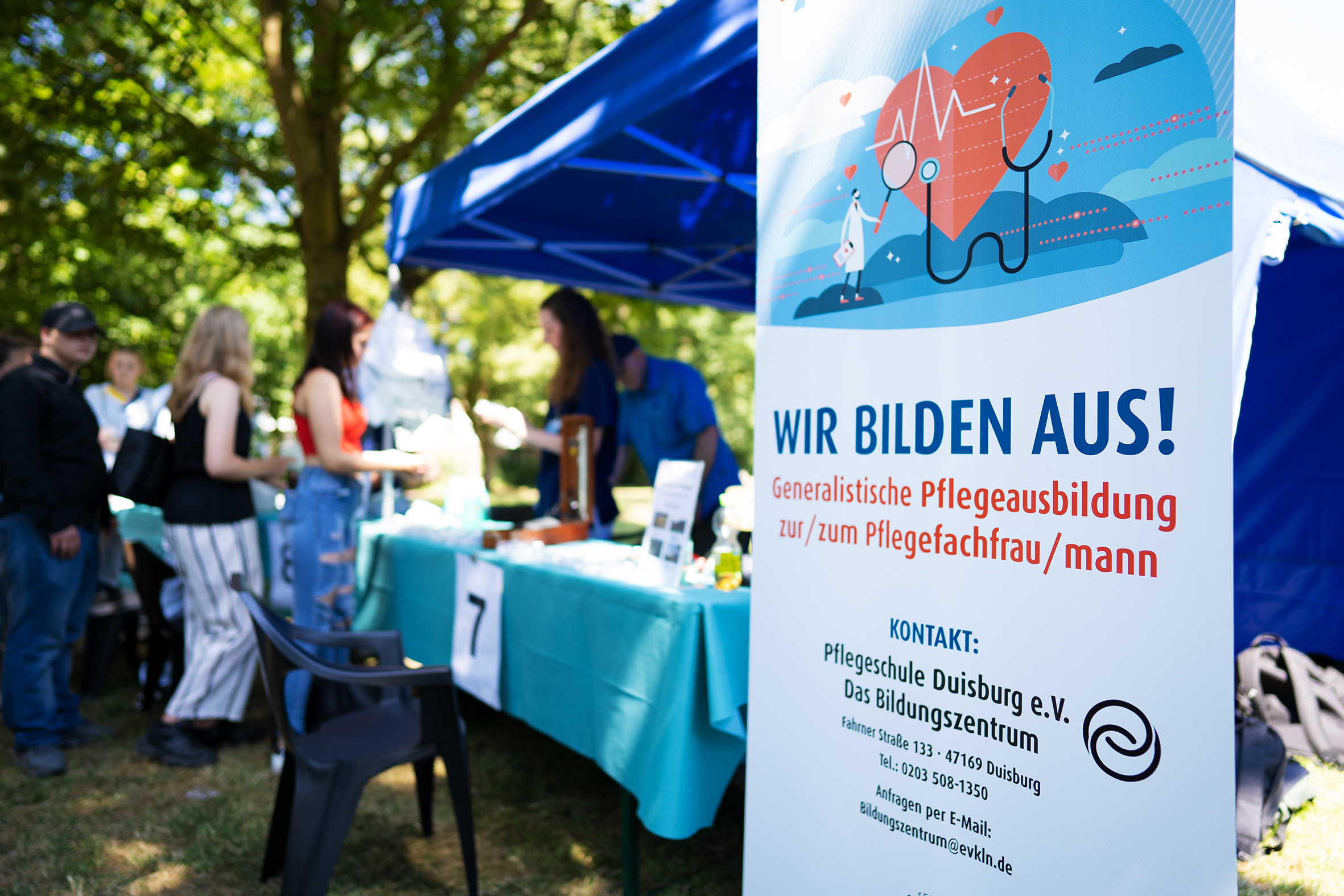 BU: Infostand der Pflegeschule Duisburg e.V. (Foto: EVKLN)