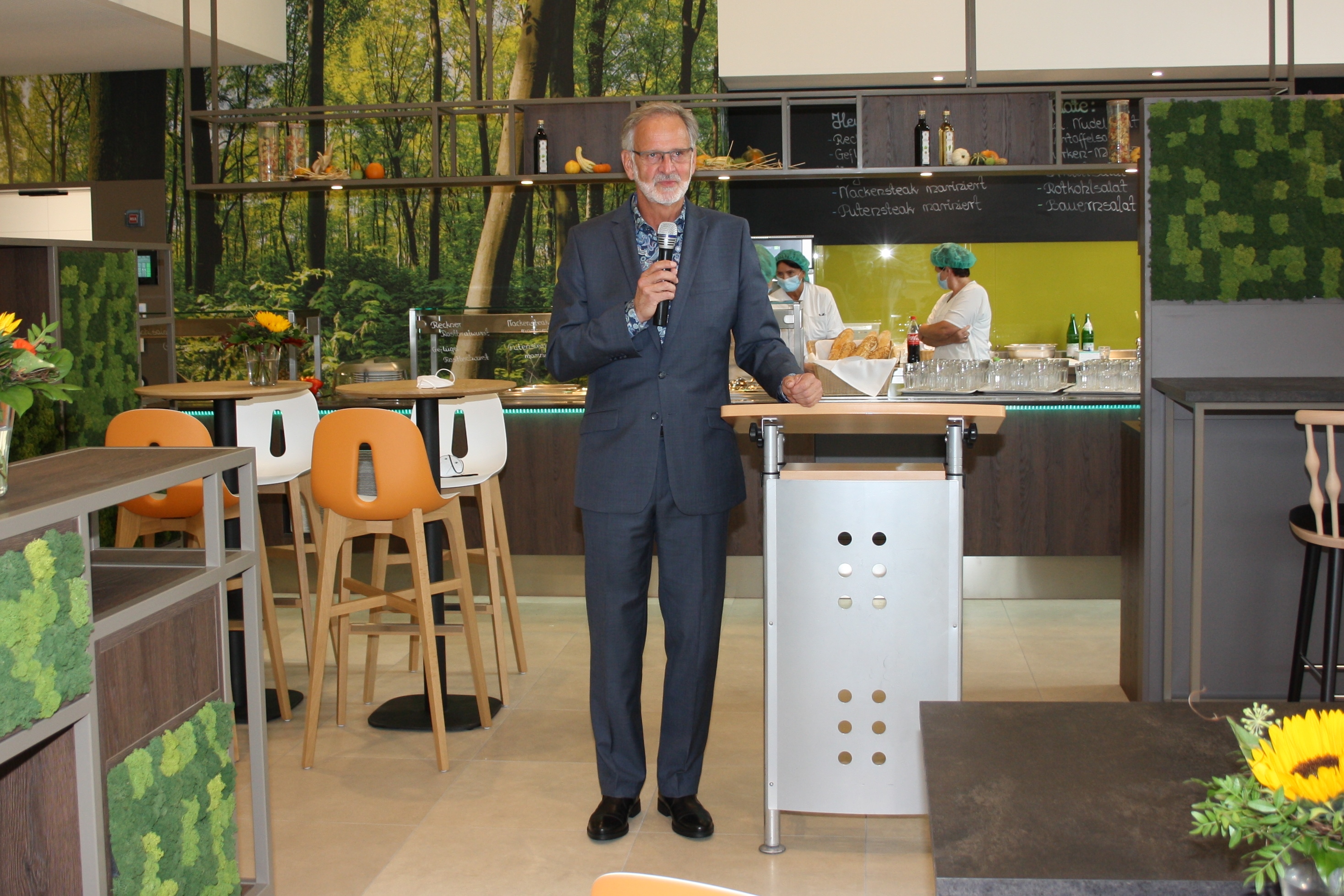 Die Krankenhausbetriebsleitung begrüßte mit Stolz und Freude die Abteilungsleitungen der Klinik, Fachplaner, Ingenieure, Architekten, den Vorstand DGD-Stiftung, Trägerin der Lungenklinik, sowie den Hemeraner Bürgermeister und weitere Gäste zu einer kleinen Feierstunde im neuen Bistro. Als Ehrengast war auch Dr. Hans-Peter Kemmer eingeladen, der im Sommer 2020 aus seinem aktiven Dienst als langjähriger Ärztlicher Direktor ausgeschieden war, damals aber coronabedingt nicht verabschiedet werden konnte.