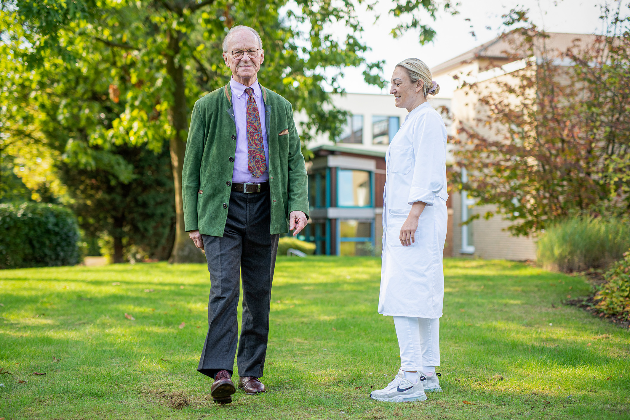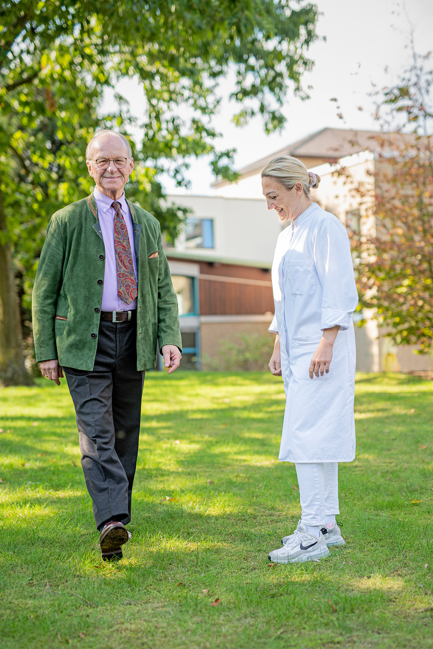 „Selbst als 80-Jähriger kann man seine Ausdauer und Beweglichkeit wiedererlangen - auch fürs Fahrradfahren und Golfspielen“, macht sie Hermann Wasser Mut. Als Voraussetzung dazu habe sie das erste Drittel beigetragen, die anderen zwei Drittel muss der Patient durch Mitarbeit und die notwendige Geduld erbringen.