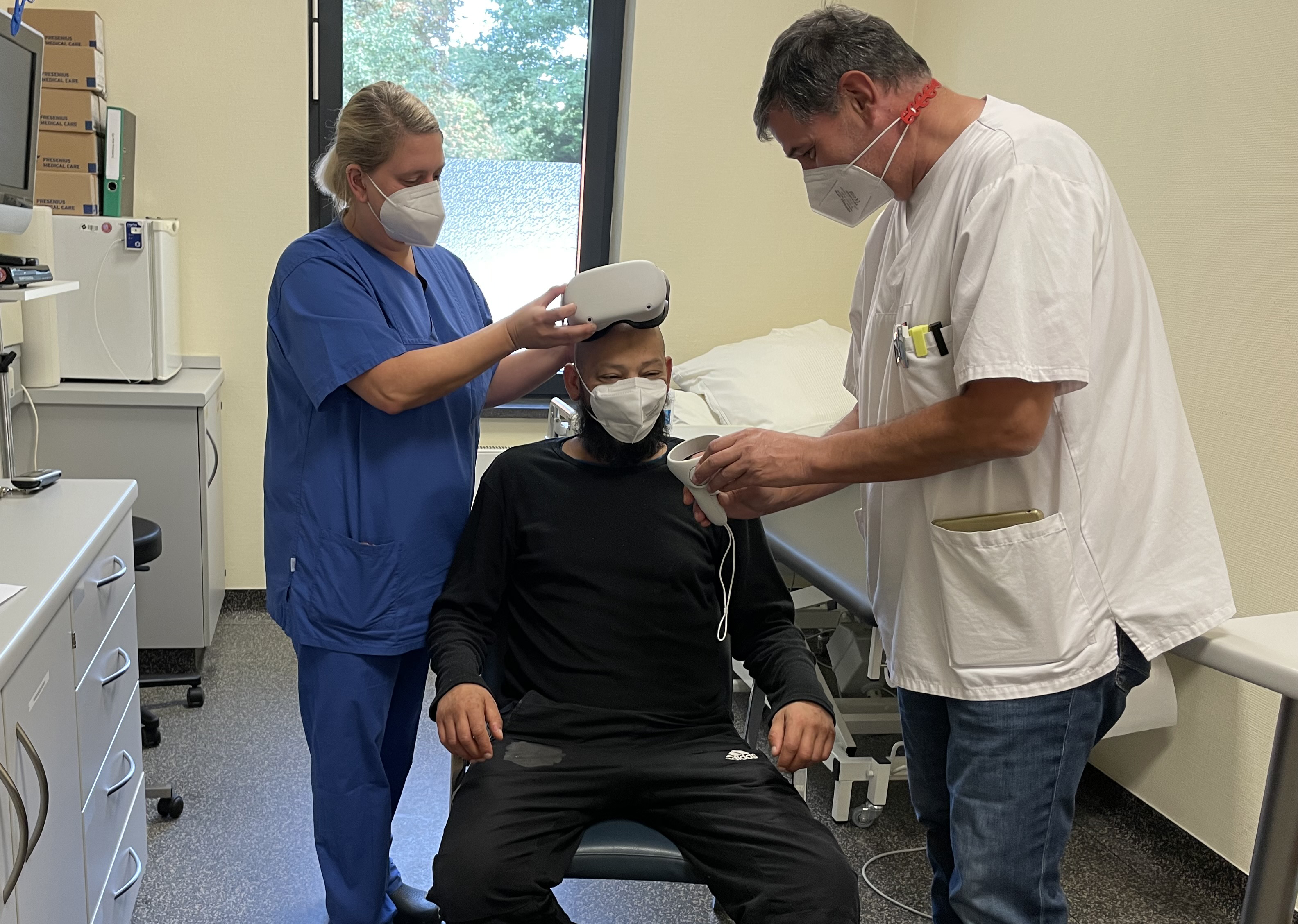 Der leitende Oberarzt in der nephrologischen Klinik, Michael Christen, ergänzt: „Gerade, wenn Patienten einige Wochen Vorlauf haben, bis sie mit der Bauchfelldialyse beginnen können, ist das Training mit der VR-Brille eine ideale Ergänzung zu der Vorbereitung, die durch uns Mediziner und durch die Pflegekräfte erfolgt. Der Einsatz dieser Methode ist medizinisch sinnvoll, fördert die Selbstverantwortung sowie Flexibilität der Patienten und schont Ressourcen. Wir erhoffen uns hierdurch eine raschere und bessere Vorbereitung und möchten darüber möglichst viele Patienten für die Heimtherapie motivieren. Seit einigen Monaten verwenden wir die Methode bei allen Schulungen zur Peritoneal-Dialyse.“