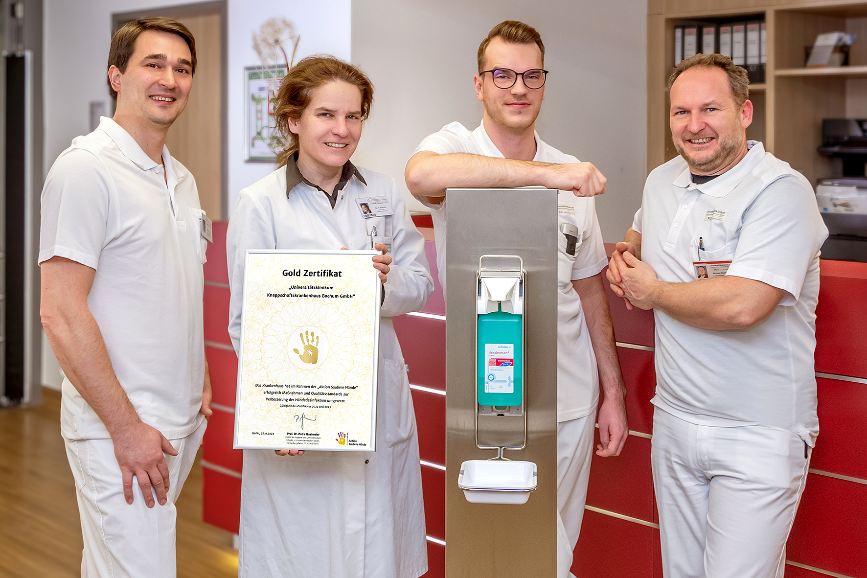 Download der Pressemitteilung als PDF: https://www.kk-bochum.de/de/Aktuelles_und_Presse/PresseArchiv/2022/2022_12_13_Gold_Zertifikat_Saubere_Haende.pdf