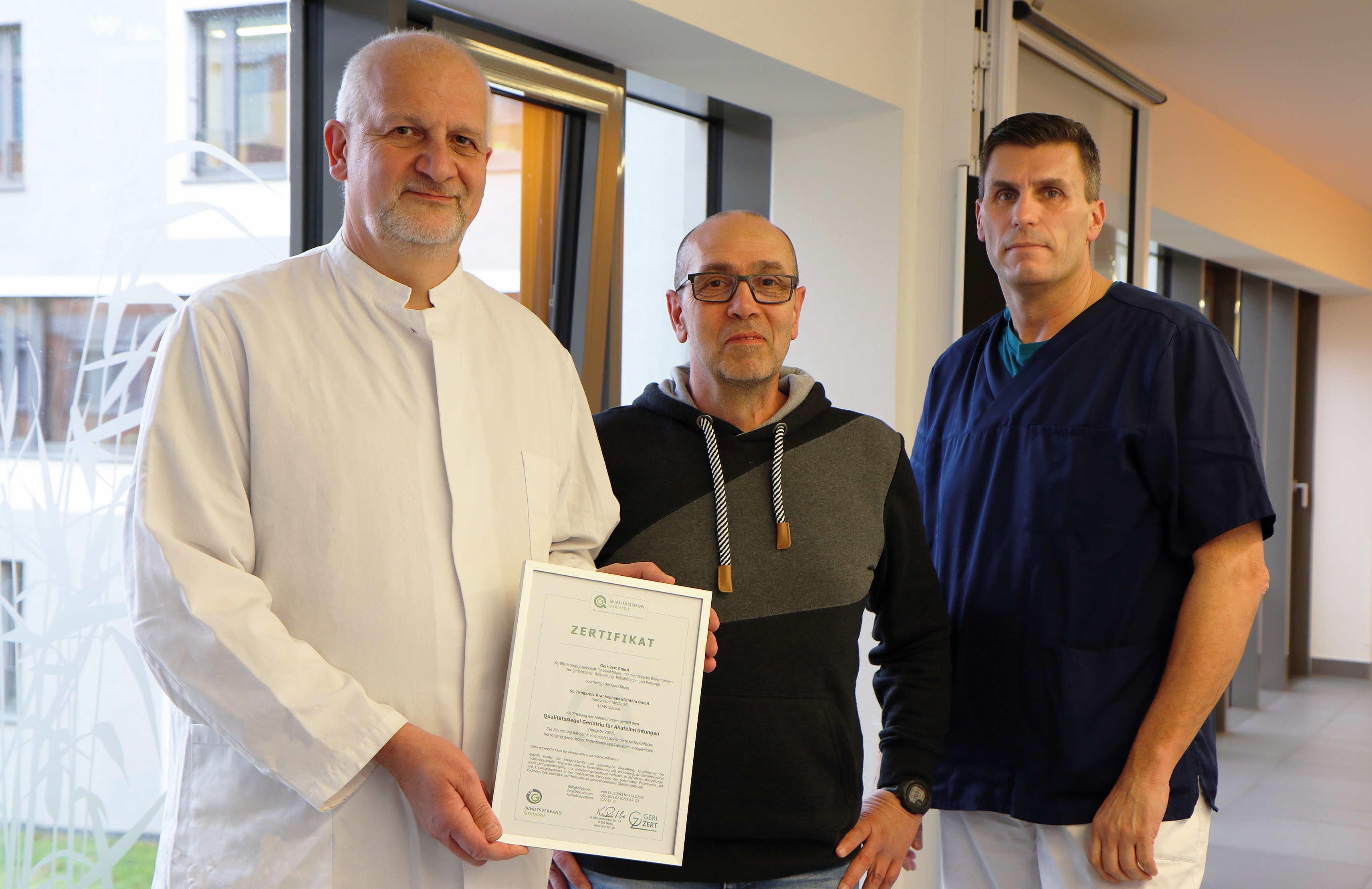 Die Klinik für Geriatrie des St. Irmgardis-Krankenhauses Süchteln unter Leitung von Chefarzt Hanns-Peter Klasen wurde mit dem „Qualitätssiegel der Geriatrie für Akuteinrichtungen“ ausgezeichnet. Es freuen sich (v.l.) Hanns-Peter Klasen, Stefan Klintsaris (QM-Beauftragter) und René Koß (Bereichsleiter Geriatrie).