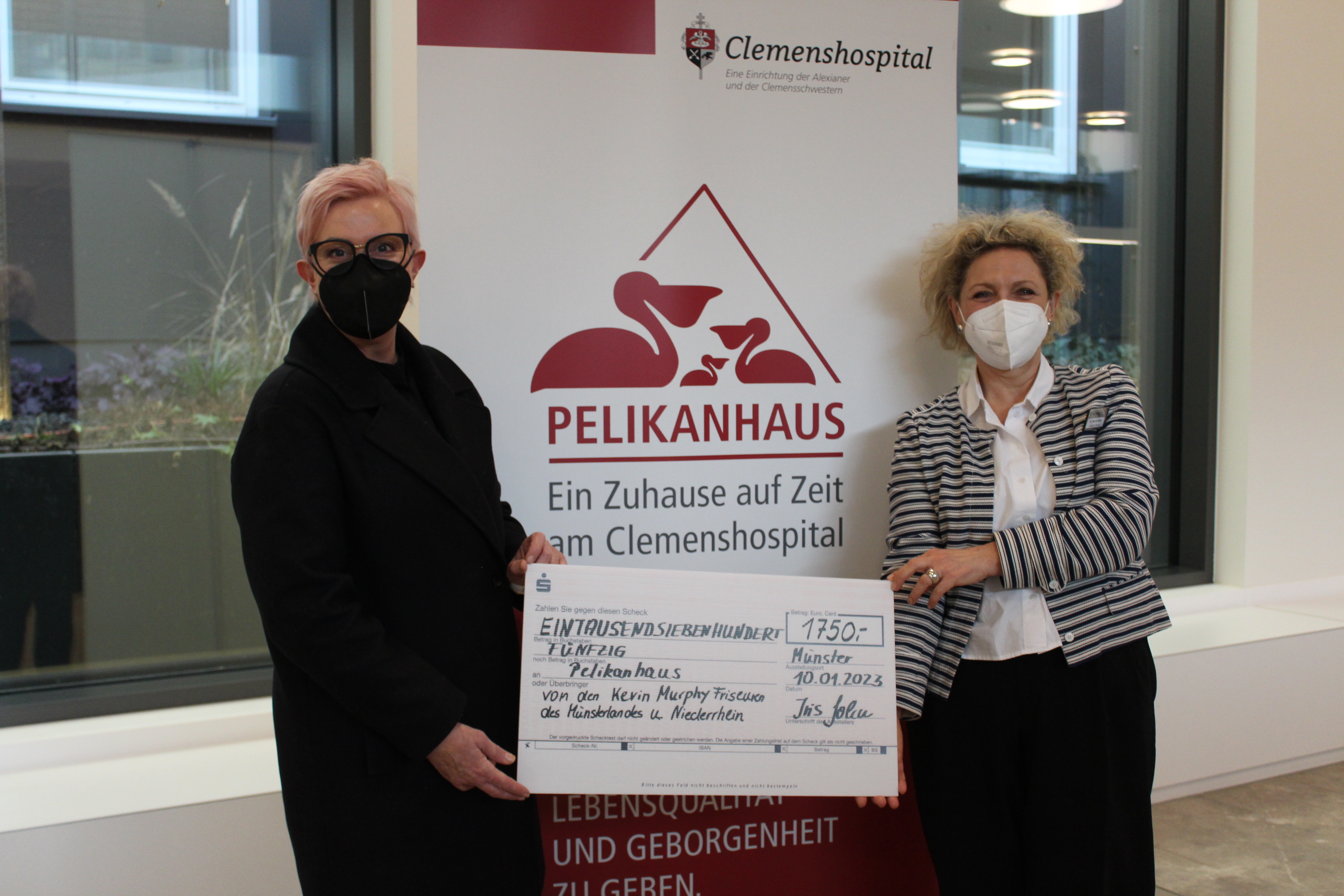 Münster. Weitere 1750 Euro gehen auf das Spendenkonto Pelikanhaus am Clemenshospital der Alexianer. Das Geld kommt aus einem Budget für Weihnachtsgeschenke und wurde mit echter „Hand-Arbeit“ aufgestockt: Iris Sohn aus Gelsenkirchen vertreibt friseurexklusive Haarpflege der Marke „Kevin.Murphy“ an Partnersalons im Münsterland und am Niederrhein. Statt zum Fest Weihnachtsgeschenke an alle Mitarbeiter*innen zu verteilen, spendet sie bereits seit einigen Jahren für gute Zwecke.