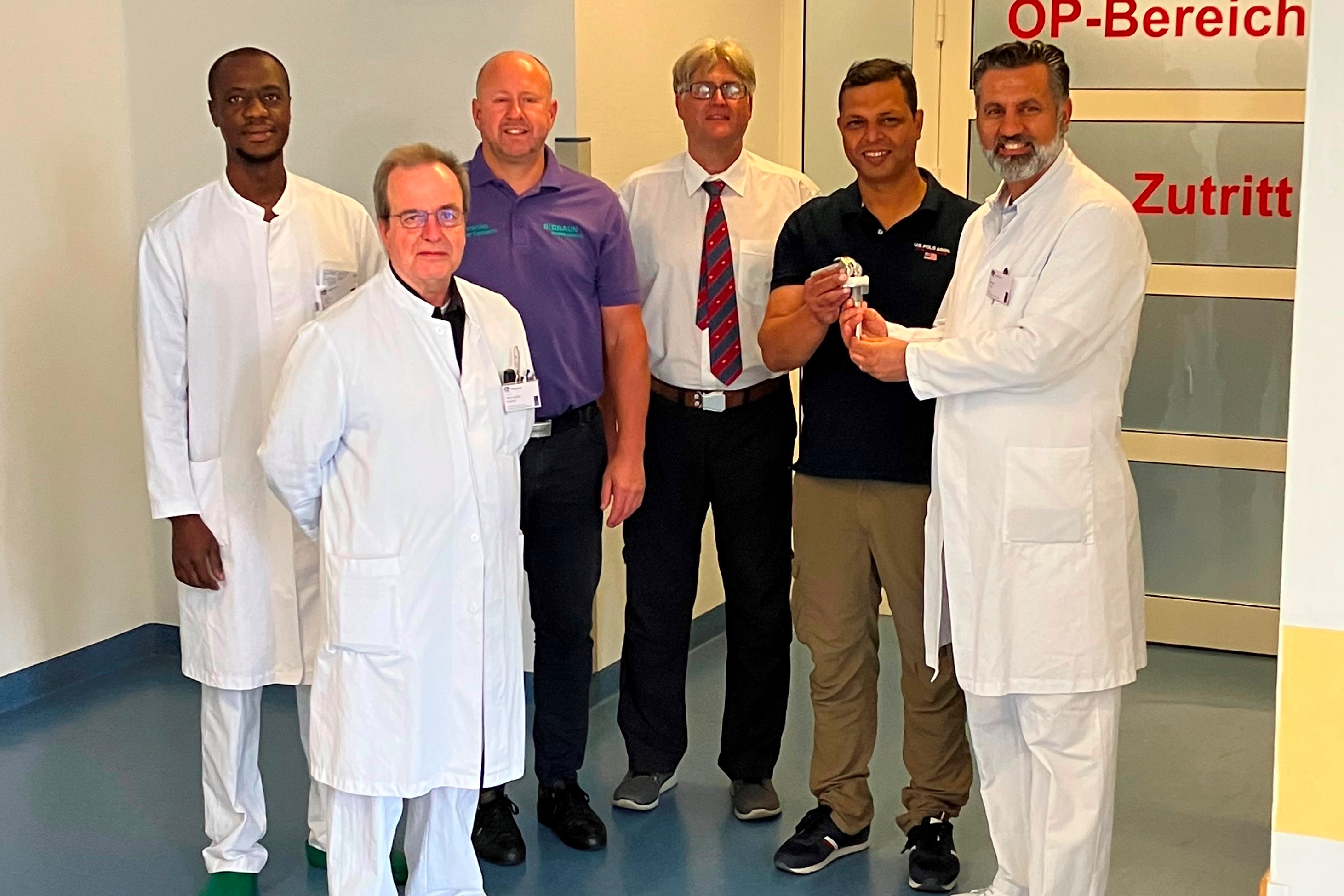 Hemer. Nachdem bereits im März eine Delegation aus Schottland in der DGD Stadtklinik Hemer zu Gast war, um sich über die Besonderheiten zum sogenannten EnduRo Knieprothesensystem zu informieren, fand am 29. Juni ein erneuter Hospitationsbesuch aus England statt. Unter Vermittlung der Herstellerfirma B. Braun Aesculap war Herr Vineet Trivedi vom George Eliot Hospital in Nuneaton/England nach Hemer gereist, um sich über das Operationsverfahren zu informieren. Die Hospitation zur Enduro Knieendoprothetik bot dem englischen Arzt die Möglichkeit, von den erfahrenen Hemeraner Experten auf diesem Gebiet zu lernen, eigene Erkenntnisse zu sammeln sowie Tipps und Tricks im Umgang mit dem Prothesensystem zu erfahren.