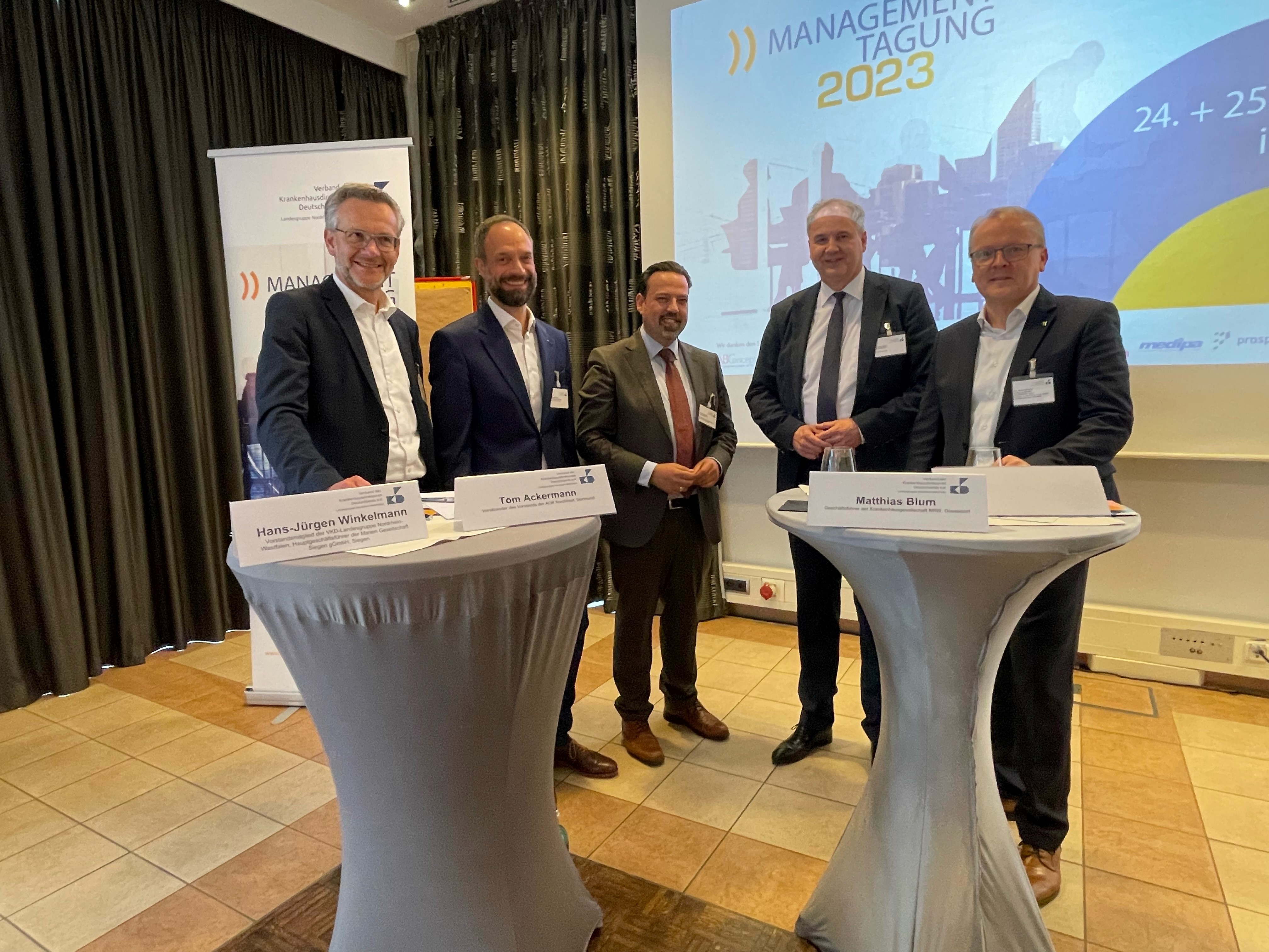 Bild: Von links: Hans-Jürgen Winkelmann (VKD), Tom Ackermann (AOK), Helmut Watzlawik (MGAS), Matthias Blum (KGNW) und Wolfgang Mueller (VKD)