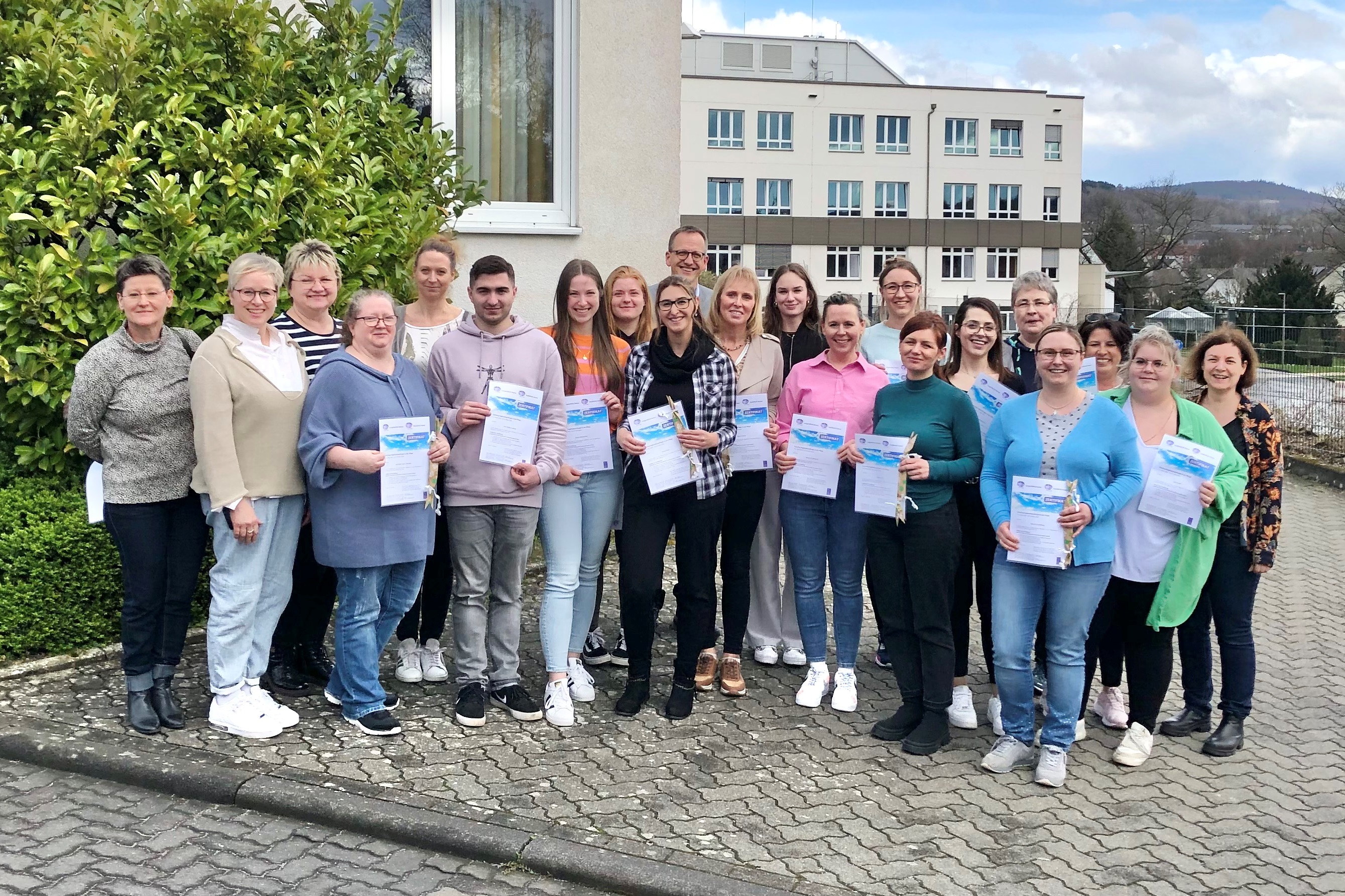 Hemer. Mit Stolz und Anerkennung wurden am 15. März 2024 insgesamt 17 Teilnehmerinnen und Teilnehmer des Fortbildungskurses „Hygienebeauftragte/r in der Pflege“ der DGD Lungenklinik Hemer, der DGD Stadtklinik Hemer und dem zur Stadtklinik zugehörigen Medizinischen Versorgungszentrum (MVZ) Iserlohn-Hemer für Orthopädie und Unfallchirurgie ausgezeichnet. Alle Absolventinnen und Absolventen erhielten nicht nur ein Zertifikat über die erfolgreiche Teilnahme an dem intensiven Kurs, sondern auch eine kleine Aufmerksamkeit als Zeichen der Wertschätzung für ihr Engagement und ihren Einsatz.