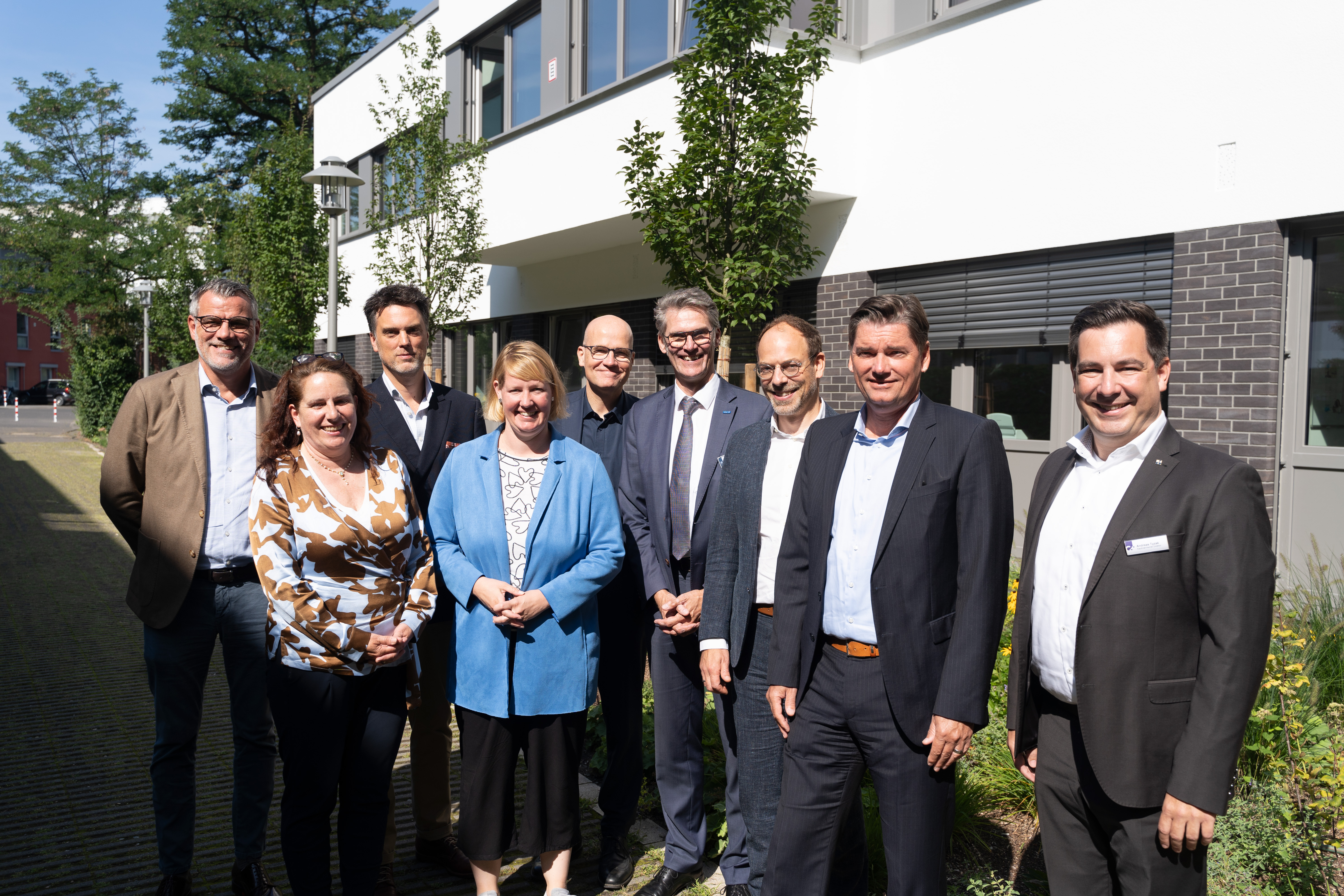 v.l. Dr. Jan Schlenker (Geschäftsführer der Katholischen Hospitalvereinigung), Maud Beste (Geschäftsführerin Klinikum Gütersloh), Robin Wagener (MdB Bündnis 90/Die Grünen), Dr. Wiebke Esdar (MdB SPD), Ralph Brinkhaus (MdB CDU), Thorsten Kaatze (Geschäftsführer des Evangelischen Klinikums Bethel), Jan Hendrik Unger (zukünftiger Kaufmännischer Direktor des LWL-Klinikums Gütersloh und der LWL-Klinik Paderborn), Michael Ackermann (Geschäftsführer des Klinikum Bielefeld), Andreas Tyzak (Kaufmännischer Direktor des Klinikums Gütersloh)