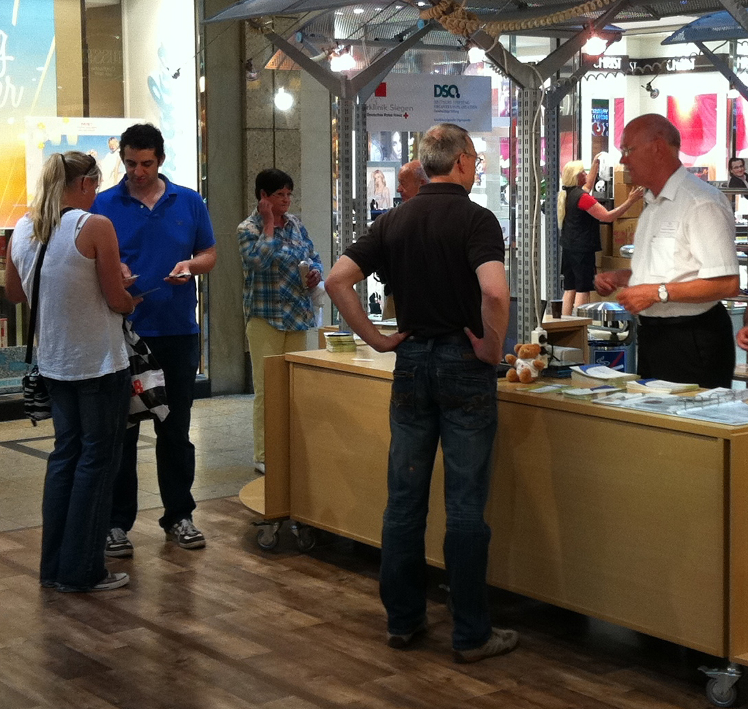 Zum Tag der Organspende am 02.06.2012 informieren Mitarbeiter der DRK-Kinderklinik Siegen im Sieg Carre über die aktuelle Situation, stehen bei Fragen zur Verfügung und geben entsprechende Ausweise an Interessierte heraus.