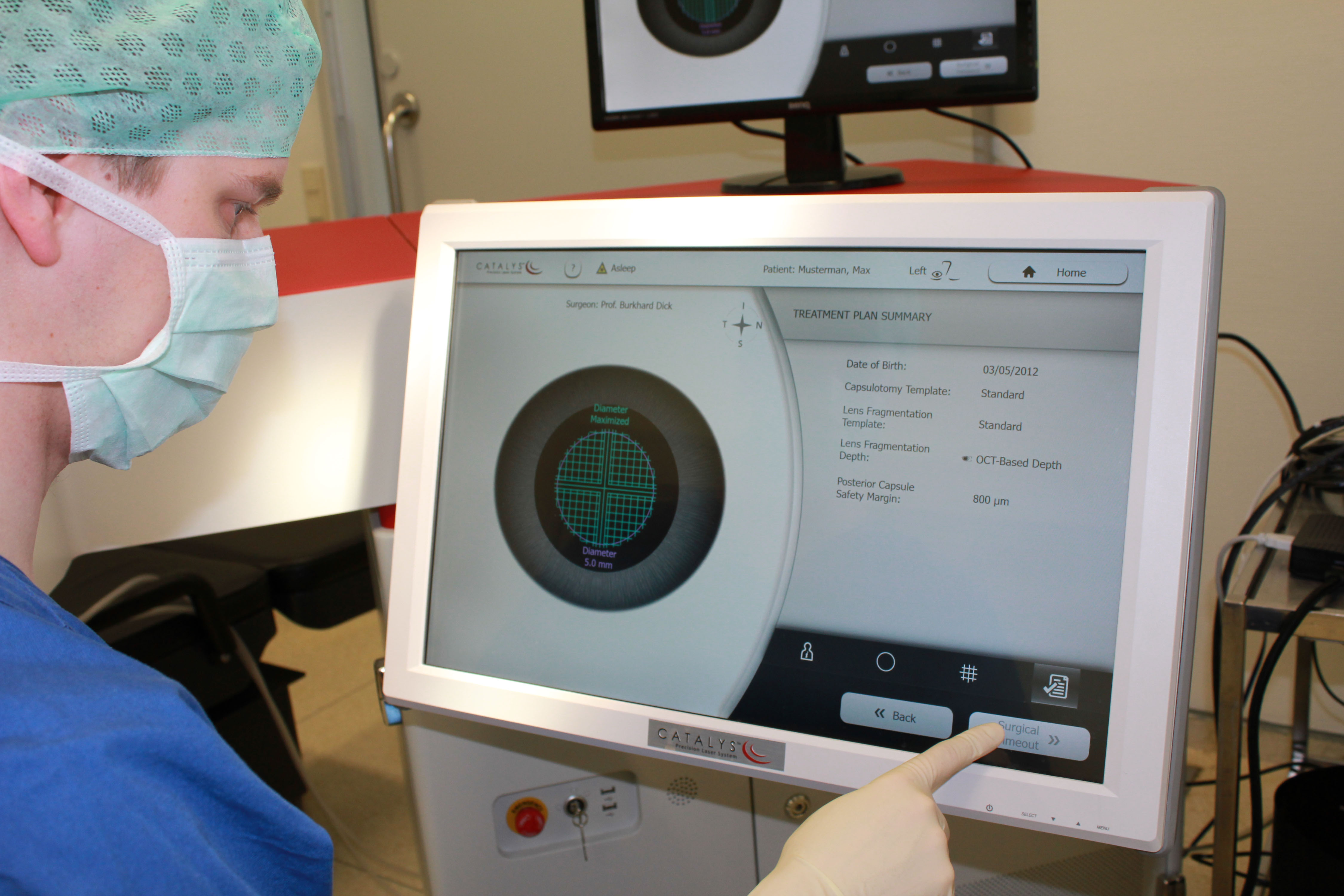 Dabei handelt es sich um einen Infrarot-Laser mit einer Spot-Größe von einem hundertstel Millimeter, der genauer als jedes mikrochirurgische Skalpell schneiden kann. Mit Hilfe eines solchen Femtosekundenlasers kann bei der Eröffnung der Hornhaut, der Linsenkapsel und der Zerkleinerung des Linsenkerns noch schonender und exakter gearbeitet werden, ganz ohne Messer. Die Linsenkapsel bleibt damit reißfester und ist danach besser für den Einsatz von Premiumlinsen geeignet. Seit Dezember 2011 wurden auf diese Weise über 3900 Patienten in Bochum operiert.