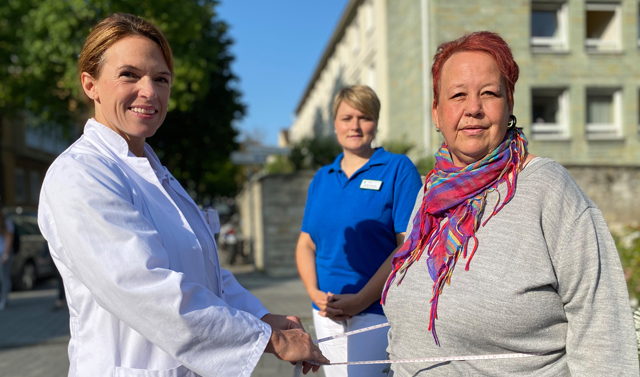 Nach unzähligen erfolglosen Diäten beschloss Tanja Westhoff, ihrem krankhaften Übergewicht den Kampf anzusagen und sich professionelle Hilfe zu suchen. Zunächst nahm sie an einem sechsmonatigen Kurs teil. Das sogenannte „MMK – Multimodale Konzept“ des Adipositas-Teams besteht aus Ernährungsberatung, Anleitung zur Bewegung und Verhaltenstraining. Sport- und Bewegungsprogramme standen von da an auf dem Stundenplan. Nach intensiven Beratungsgesprächen entschied sich Tanja Westhoff zusammen mit den Adipositas-Experten letztendlich für eine Schlauchmagen-OP. „Ein operativer Eingriff ist immer der letzte Therapie-Schritt für eine dauerhafte Gewichtsreduzierung – und zwar dann, wenn alle konservativen Maßnahmen ausgeschöpft sind“, erklärt PD Dr. Carolina Pape-Köhler, Sektionsleiterin der Adipositas-Chirurgie.
