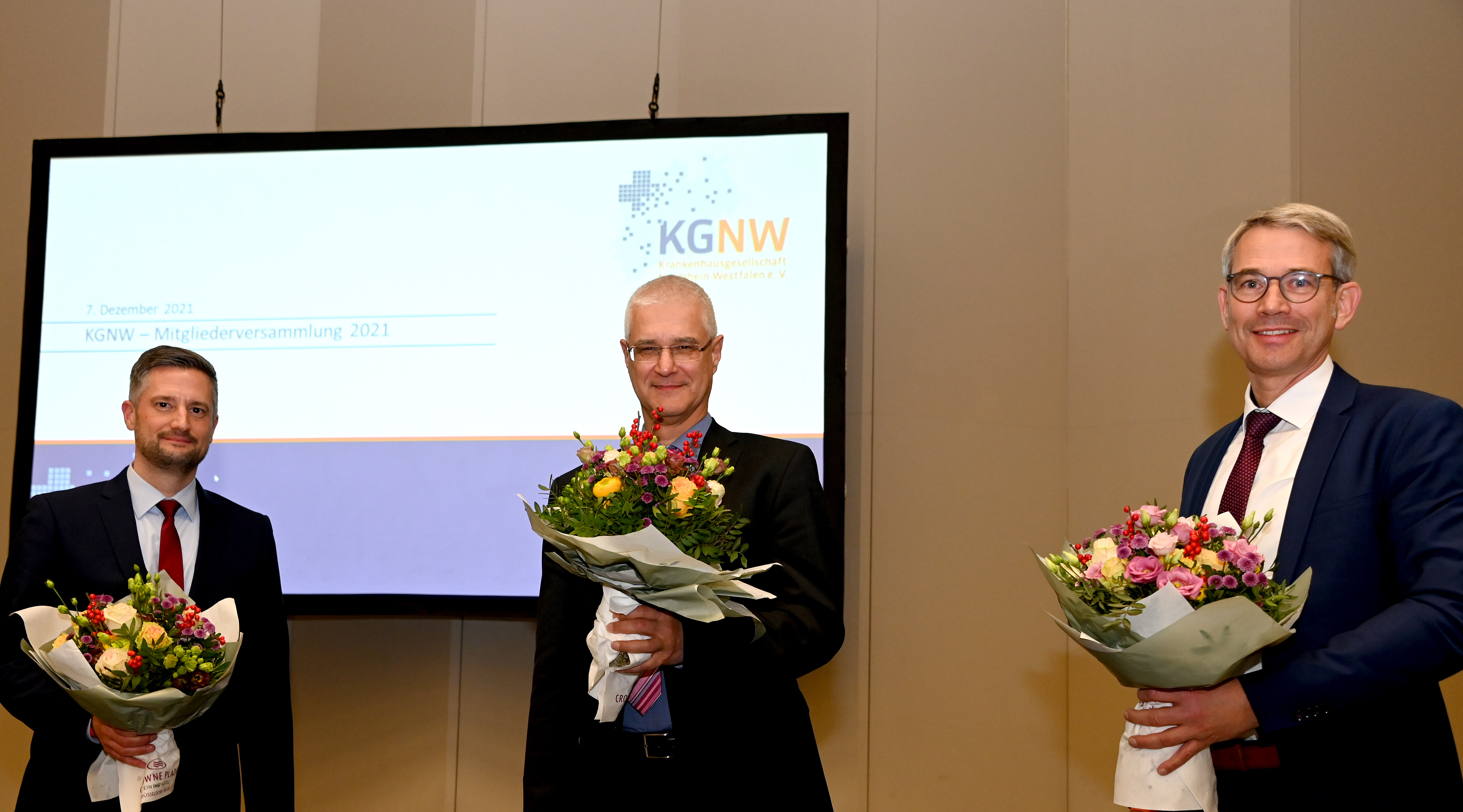 Besonders Corona und Krankenhausplanung prägten auch die Bilanz der Mitgliederversammlung für das zu Ende gehende Jahr. „Wir haben alle zusammen in vergangenen beiden Jahren große Herausforderungen angenommen und bewältigt. Die Bürgerinnen und Bürger, auch unsere Mitarbeiterinnen und Mitarbeiter erwarten von uns, dass wir das Jahr 2022 ebenso angehen“ sagte KGNW-Geschäftsführer Matthias Blum. Auf das neue Präsidium und den neu gewählten KGNW-Vorstand kämen wichtige Weichenstellungen zu. Erstmals erhielten die Mitglieder überdies einen neu gestalteten Geschäftsbericht für 2020.